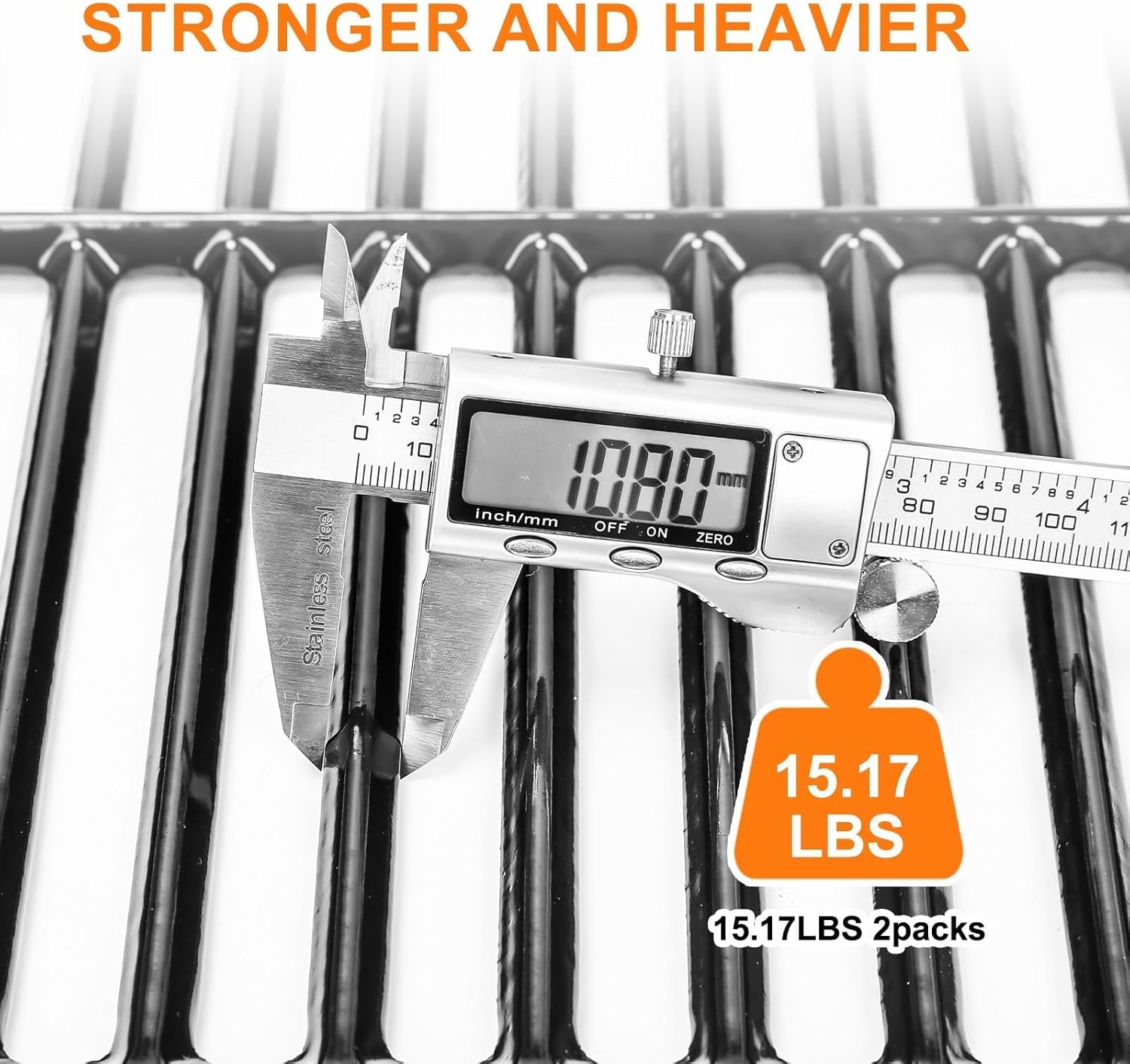 - Heavy-Duty & Durable Construction:Crafted from upgraded polished porcelain-coated cast iron, each grate measures 19.5 x 12.9 inches, these genesis grill grates are heavier (15.17 lbs) and more durable than the original Weber grill grate (10.26 lbs). Resistant to corrosion, rust, and high temperatures, they ensure long-lasting performance