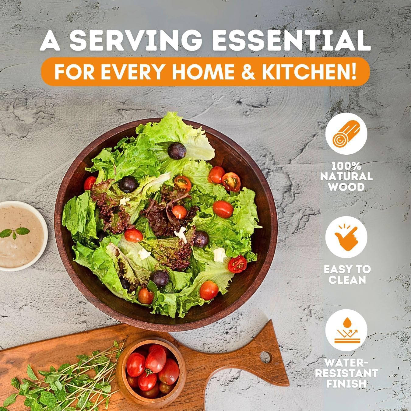 - SALAD BOWL SET: Enhance the elegance of any tabletop with these wooden salad serving utensils set. Each set comes with a large salad bowl, a wooden spoon, and a wooden fork to let you enjoy your salads without worrying about damage to your bowl. Serve fruits, nuts, and more, or use our wooden bowls for decor at home.