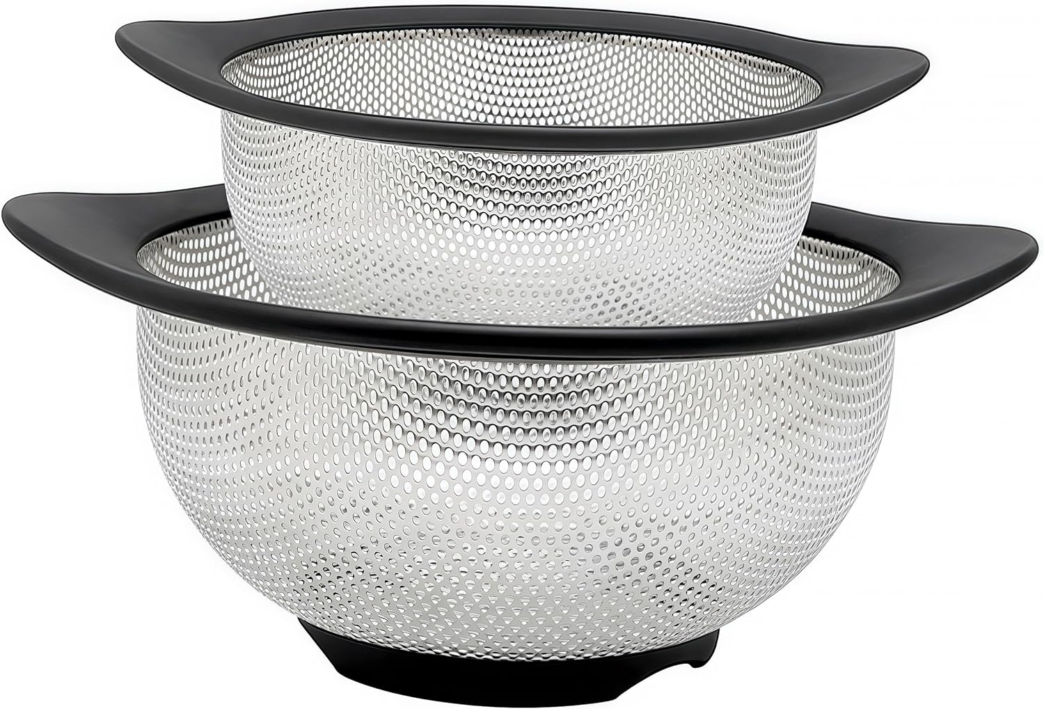 - Convenient Nesting: The colanders nest neatly inside their corresponding mixing bowls for compact storage and simple straining directly in the bowl.