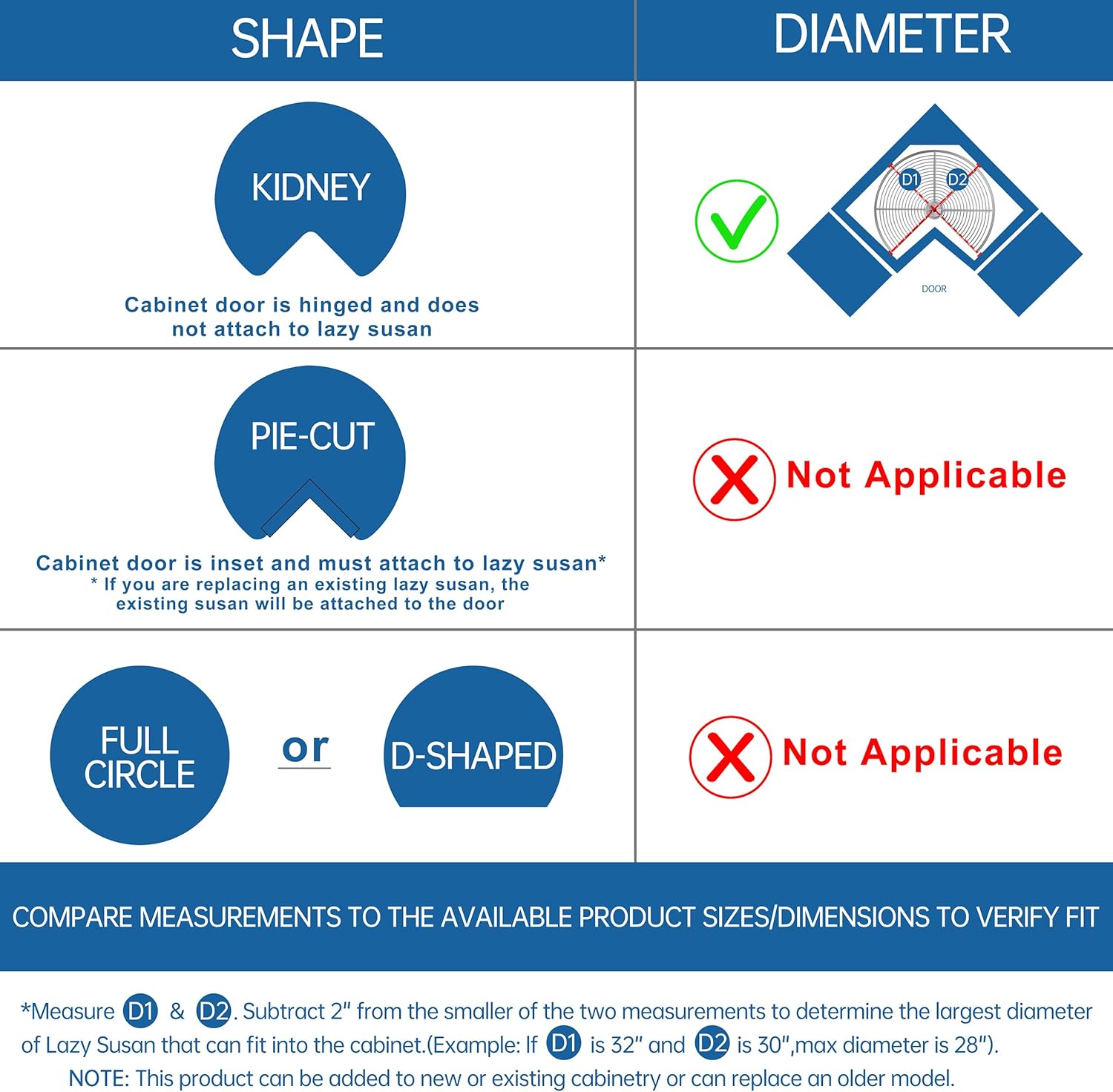 - Maximized Corner Cabinet Storage: Optimize your kitchen corner cabinet space with our 28-inch diameter JOWBOOW Lazy Susan. Designed for corner cabinets over 28 inches, our lazy susan turntable for cabinet efficiently utilizes hard-to-reach areas, making it perfect for storing baking supplies, and kitchen gadgets. Note: Lazy Susan unable to install on the cabinet door.