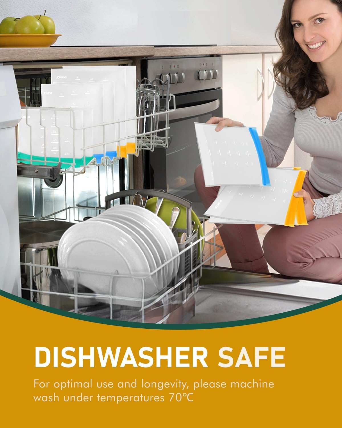 - Dishwasher Safe, Easy to Clean: These reusable storage bags are suitable for dishwasher, easy to clean. While put the reusable bags silicone on the top rack of the dishwasher, please skip high-temperature functions, can up to 70 degrees Celsius