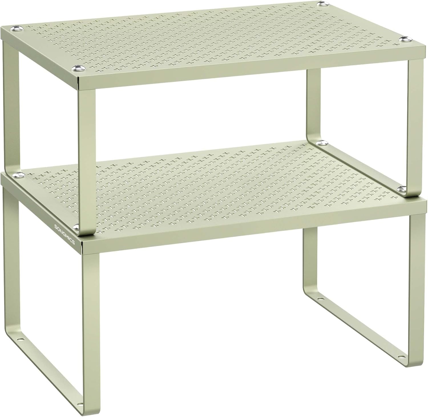 SONGMICS Spice Racks, Set of 2 Metal Cabinet Shelf Organizers, Countertop Organizers, Shelf Risers, Stackable, Expandable, Sage Green UKCS001C01