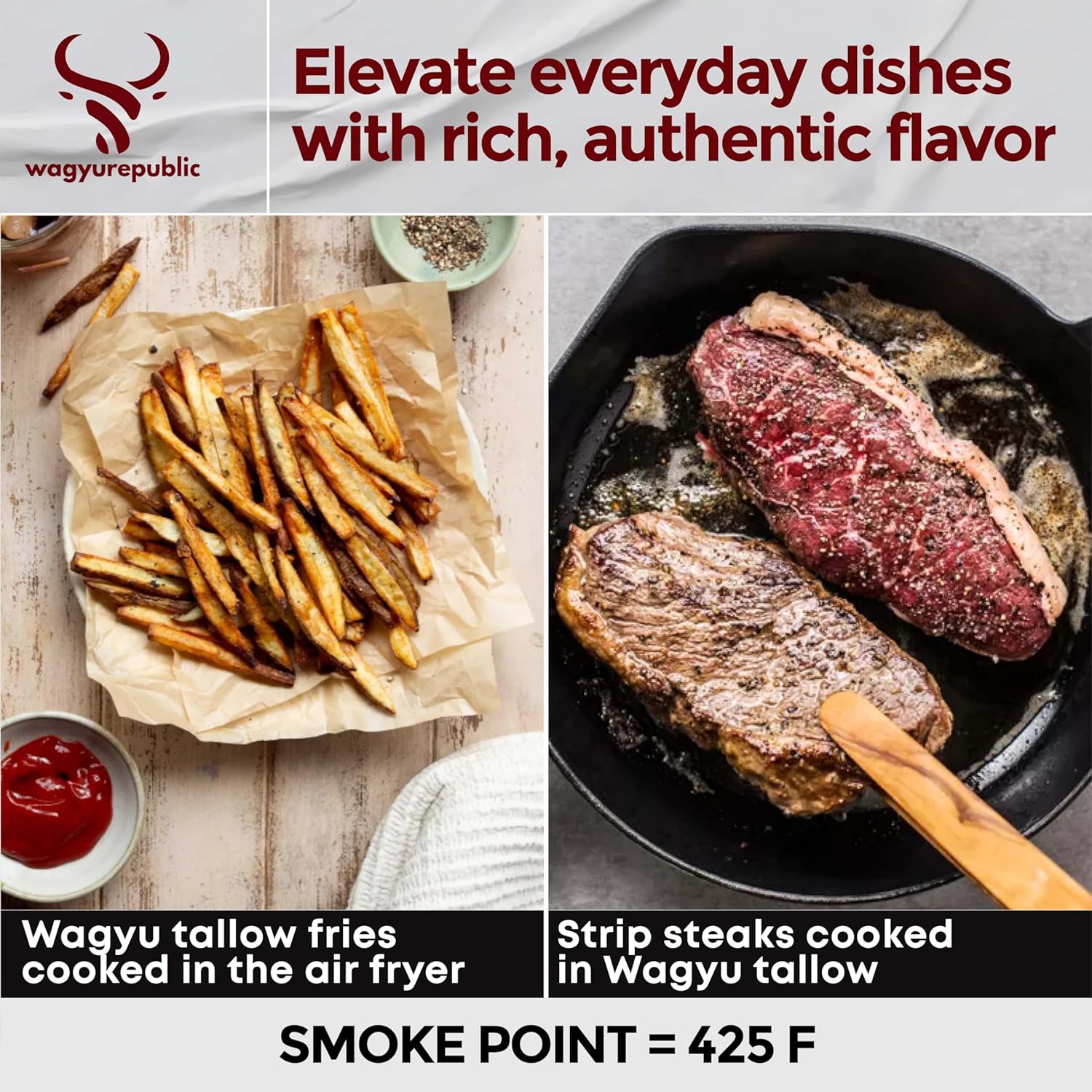 - WAGYU REPUBLIC BEEF TALLOW (32oz) — Elevate snacks and meals with the subtle rich flavor and smooth texture of Wagyu tallow. Perfect for Tomahawk steaks, ground chicken, even pie crusts.