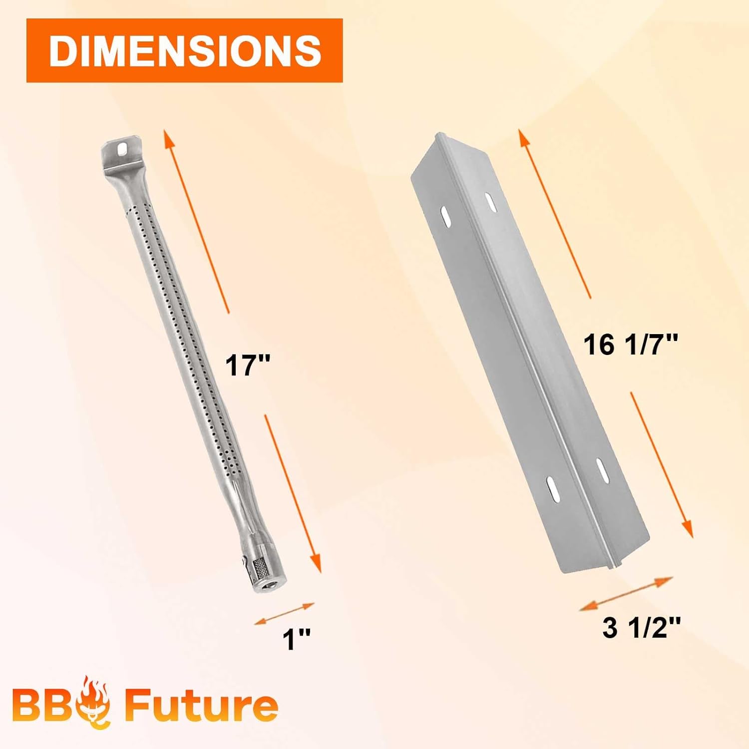 - Dimension: Cooking Grate: 14" x 17 3/4" Each; Heat Plate: 16 1/8" x 3 1/2" each; Burner: 17" L x 1" for each. bbq gas grill heat shield tents, easy to use and clean
