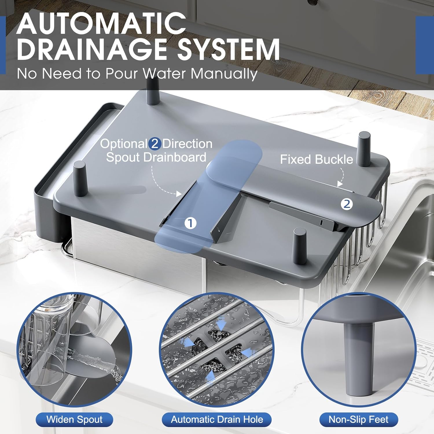 - Premium 304 Stainless Steel Dish Drying Rack: Built with surgical-grade 304 steel (trusted in professional kitchens!), this over sink dish drying rack resists rust and corrosion forever. No flaky coatings, no stains β just a durable drying rack that survives daily chaos by your kitchen sink!