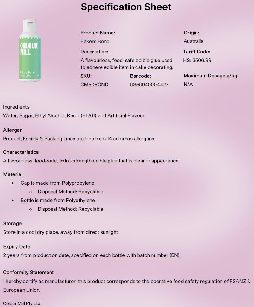 - Designed to bond decorations and for assembling baking structures.
