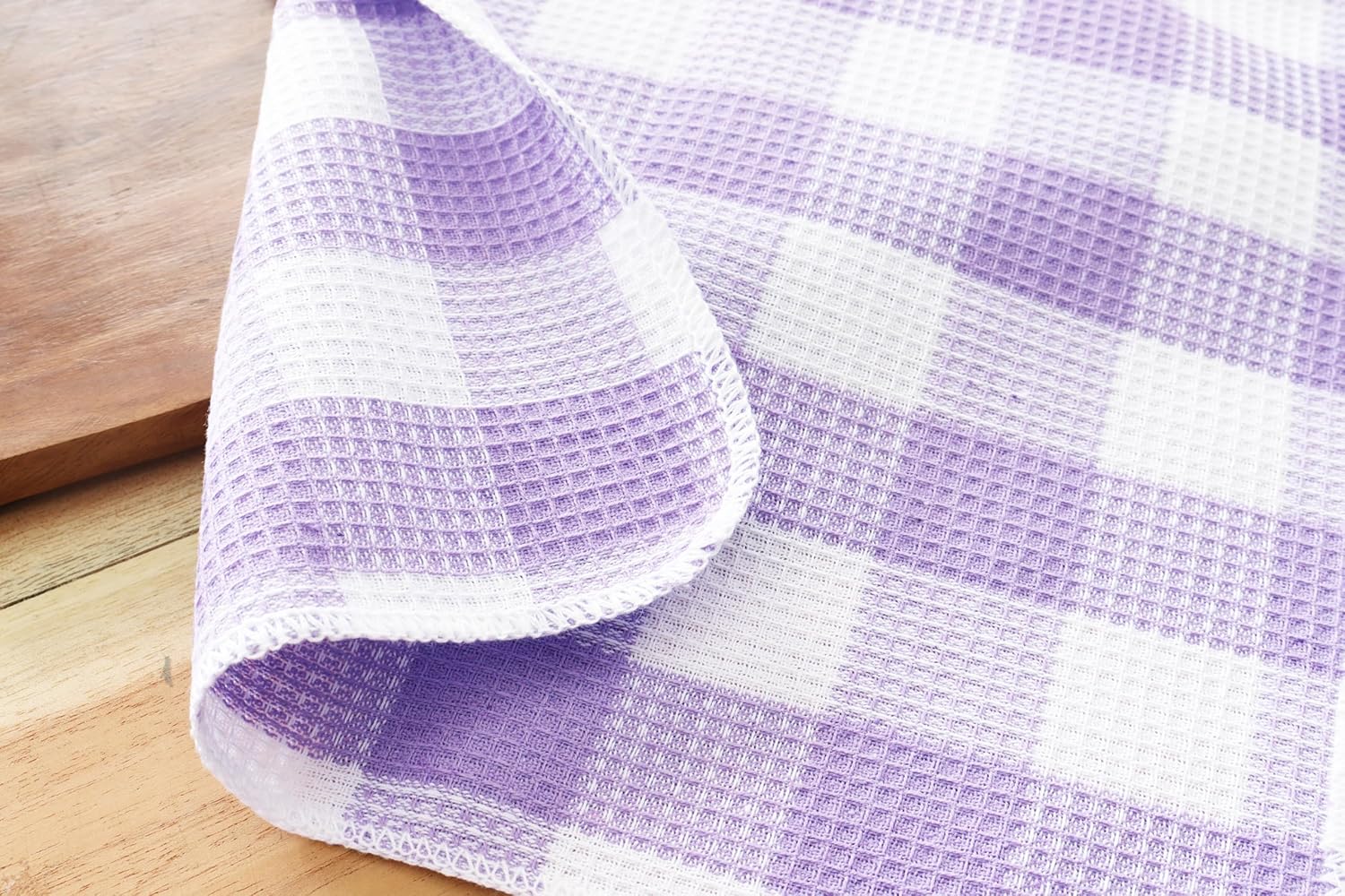 Waffle Weave Plaid Dish Cloths, 100% Cotton - 12 x 12 Inches, Ultra Soft Absorbent Quick Drying Dish Towels Buffalo Check Dish Rags for Kitchen, 8 Pack - Spring Summer - Lavender & White