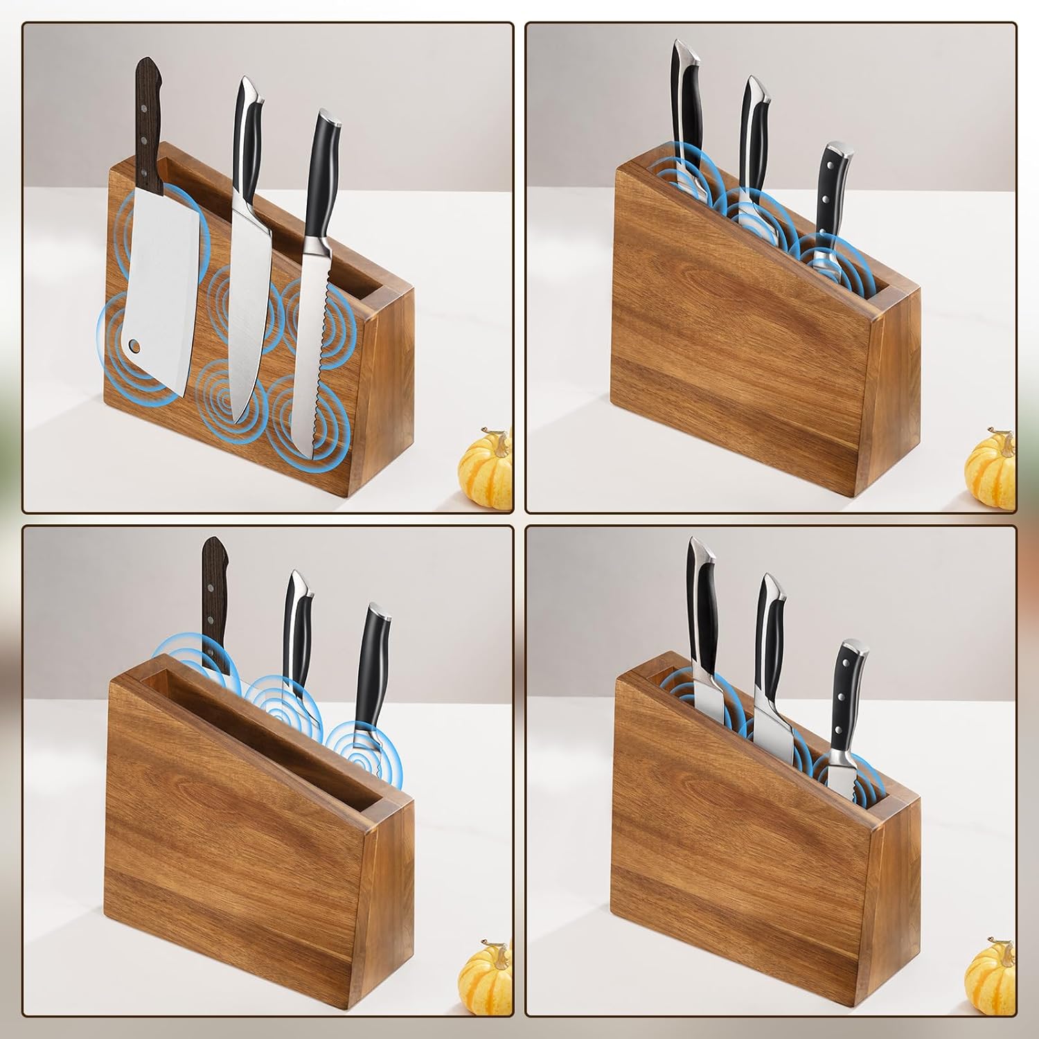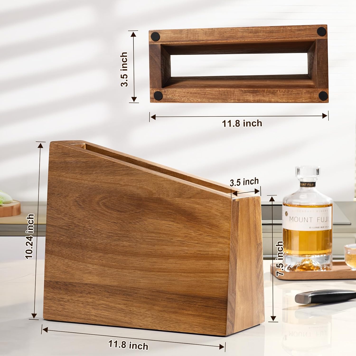 XXXL Magnetic Knife Block 11.8x10 inches, 4-Side Universal Knife Holder Builted in Powerful Magnet, Natural Acacia Wood Knife Storage Organizer for Kitchen Display