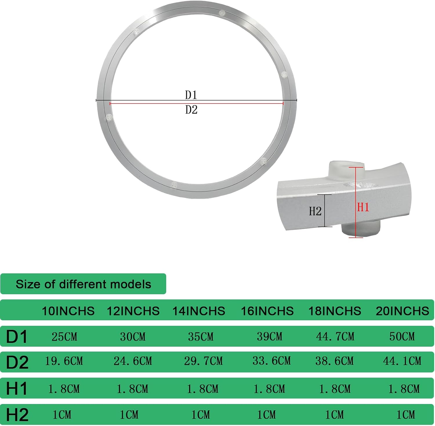 - ✅【OFFERING a VARIETY of SIZES】our heavy duty aluminum turntable ball bearings offer you a variety of sizes: 10 inch,12 inch, 14 inch, 16 inch, 18 inch, 20 inch. Please see our pictures for our swivel bearings.