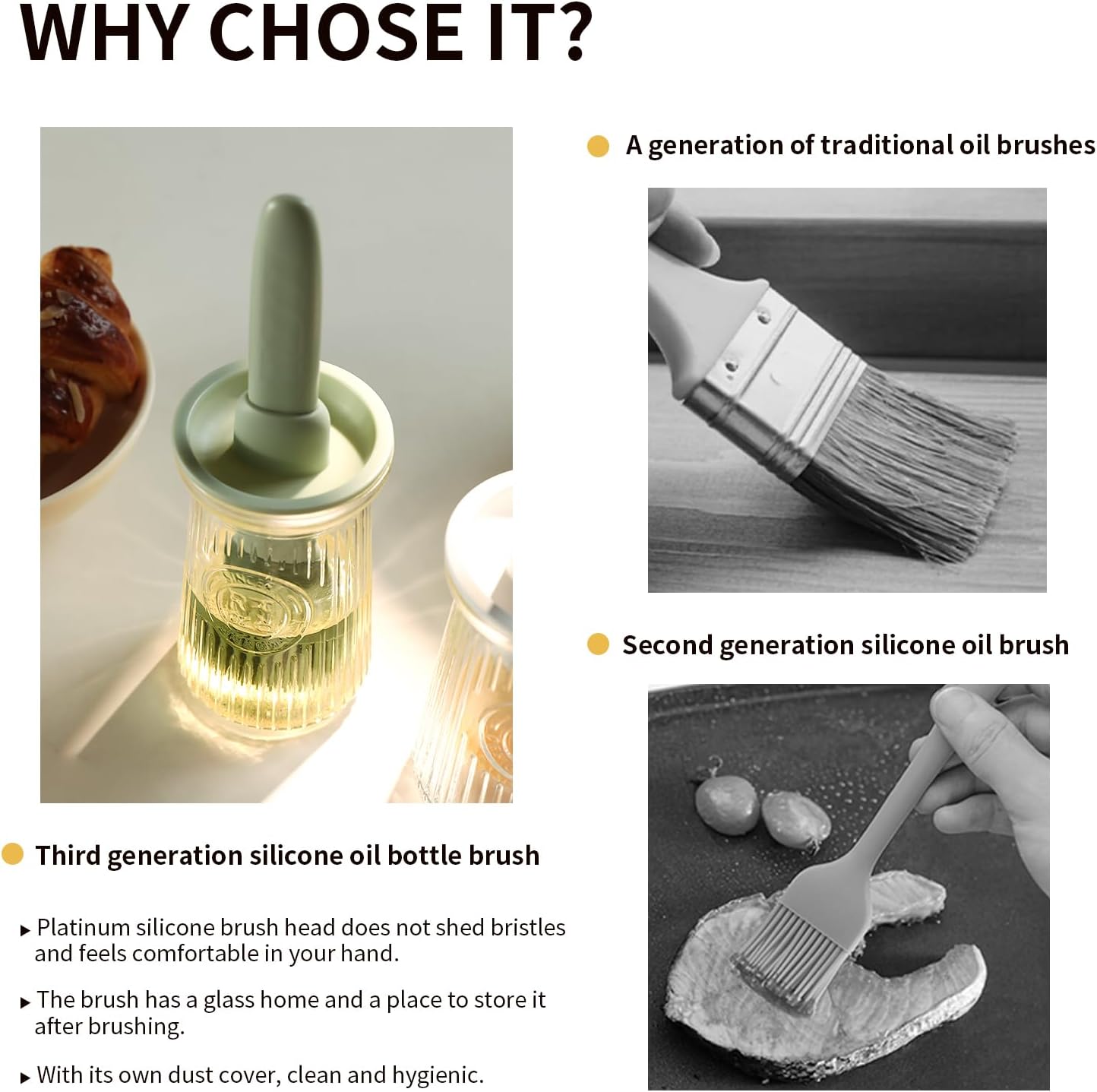 - UNIQUE 3 IN 1 DESIGN OIL DISPENSER: The brush are made of food-grade silicone. The stepped three-layer short bristle brush has no strange smell, no deformation, no hair loss, and a heat-resistant temperature of up to 250°C/484°F and can evenly distribute food. The oil dispenser with brush is made of food-grade PP material, which is durable and not easily broken.