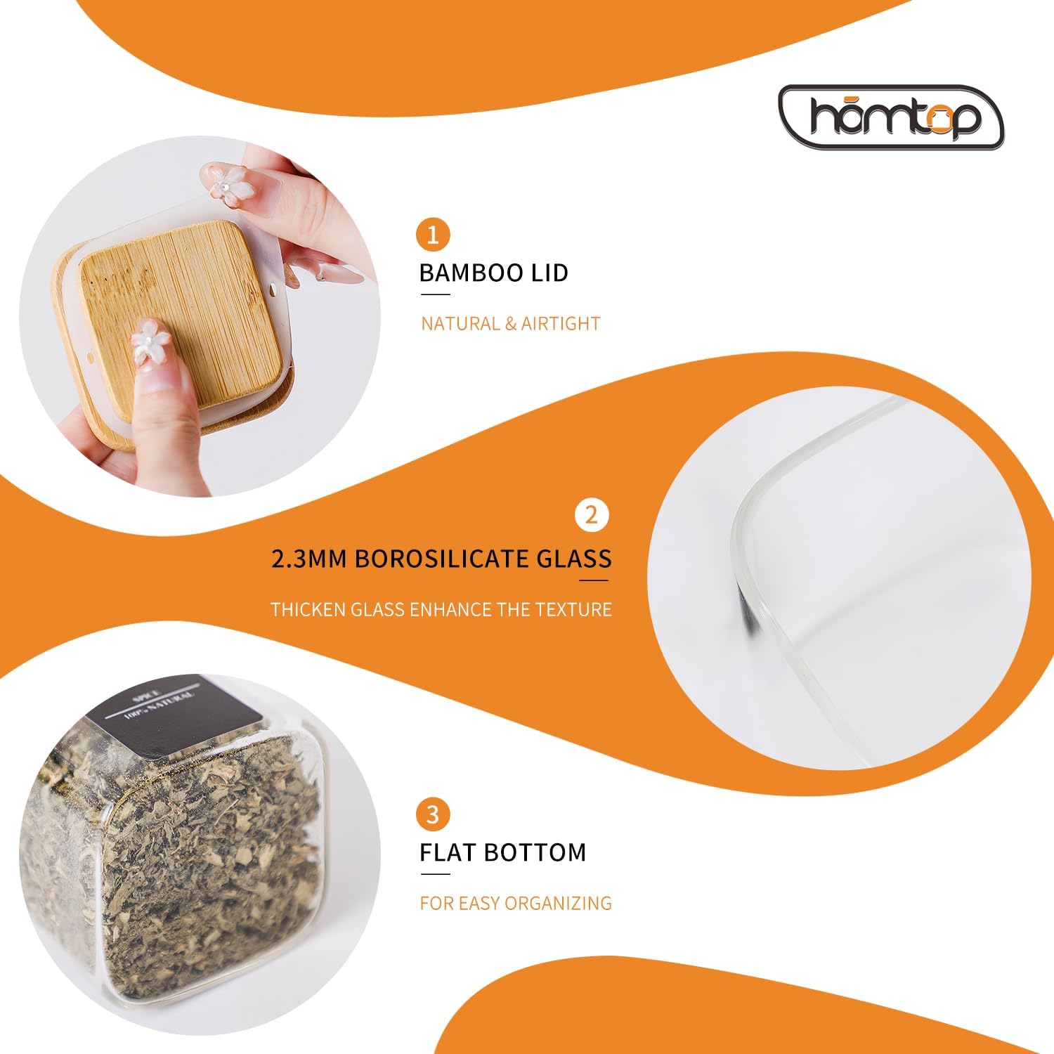 - Notice - These spice jars can only use in storing dry food. The jars(Without lid) can use in microwave, oven, dishwasher.