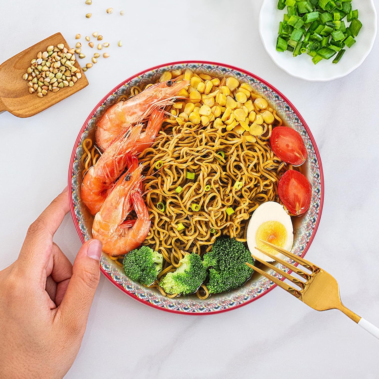 Large Serving Bowls, 75 Oz Fruit Salad Bowls Set of 2, Bohemian Style Large Porcelain Dishes for Entertaining Parties,Big Bowls for Salad, Pasta, Fruit, Chips, 10.3 Inch Diameter (red.red)