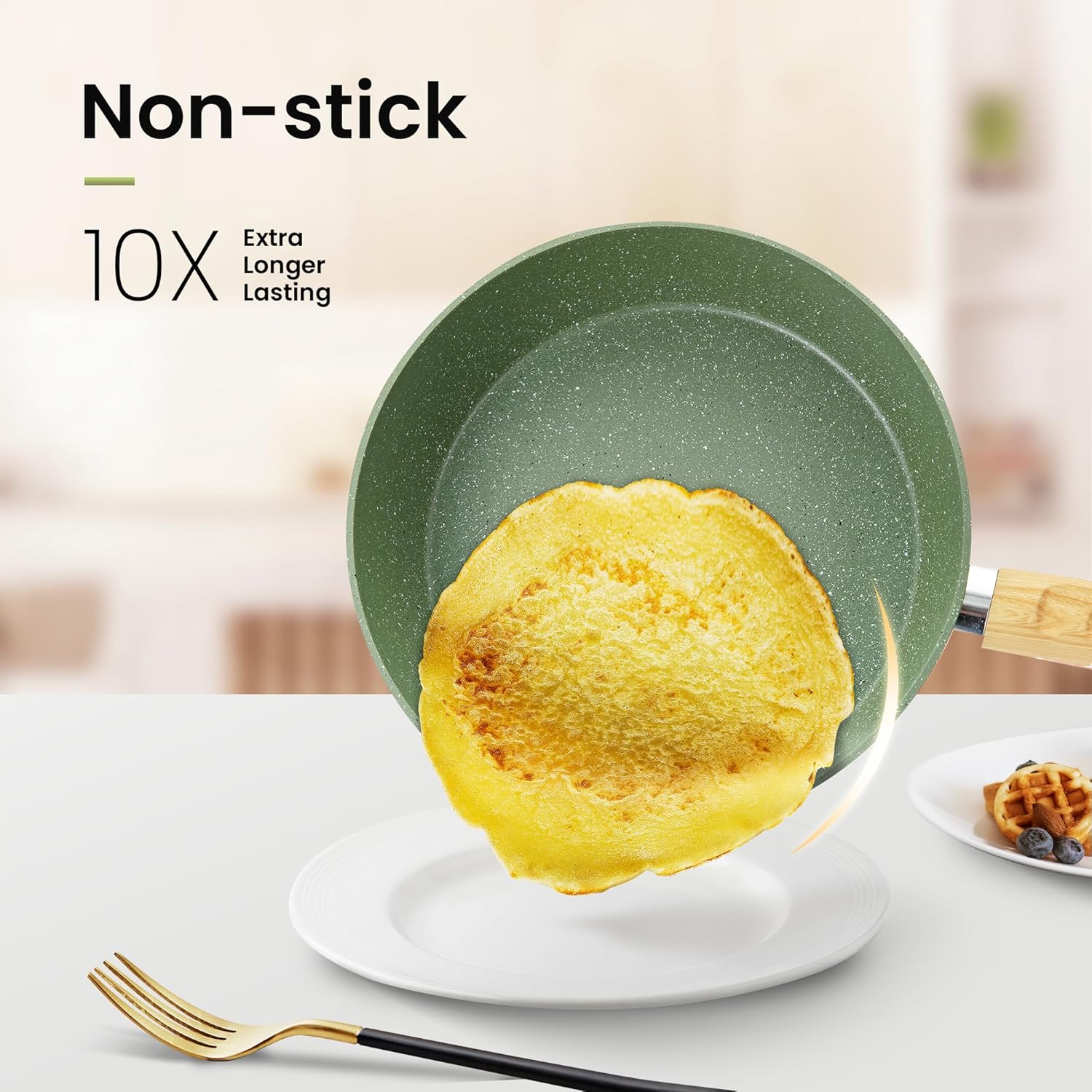 Kitchen Academy Pots and Pans Set Nonstick, 30 Pieces Induction Kitchen Cookware and Bakeware Sets, Green Granite Coating Cooking Pans Set