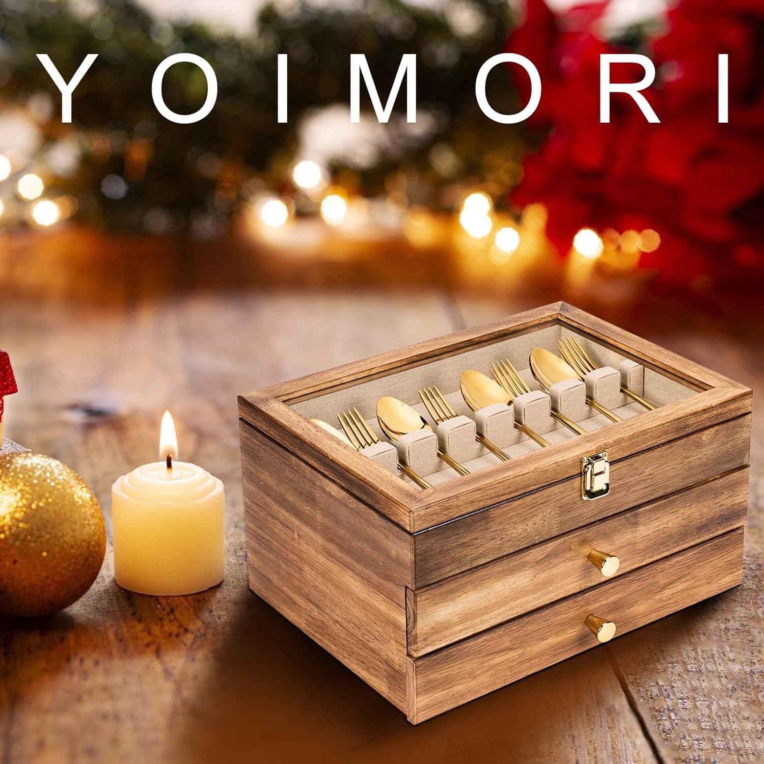 - Confidence: The wood silverware storage boxes size: 14.5x10.6×5.3inch. If you have any issue with Yoimori silverware boxes, feel free to contact us at any time.