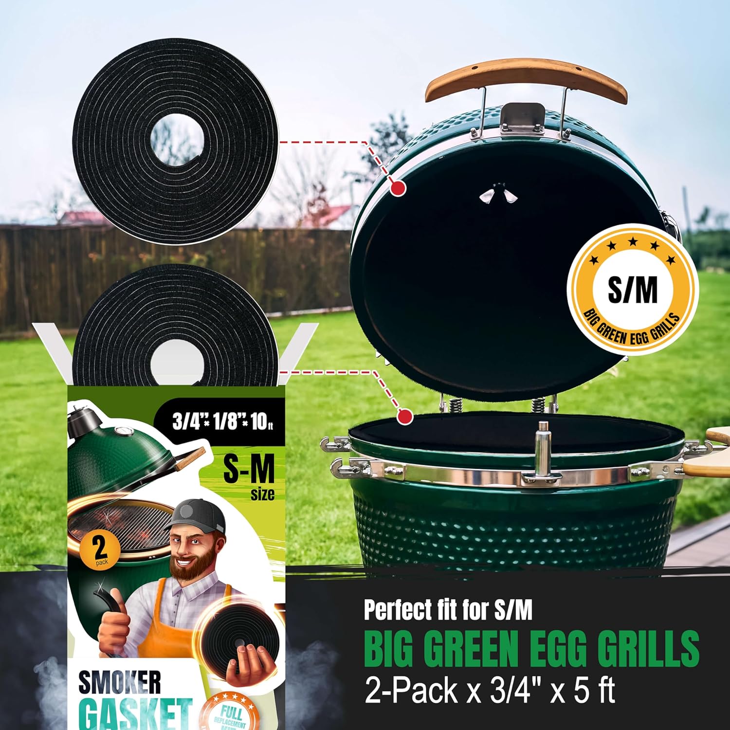 - Easy Installation: Upgrade your grill with our 2-pack x 5 FT smoker gasket, including our aftermarket Big Green Egg gasket medium fit. This self-adhesive felt ensures a quick fix, enhancing your grill's efficiency and smoke retention.