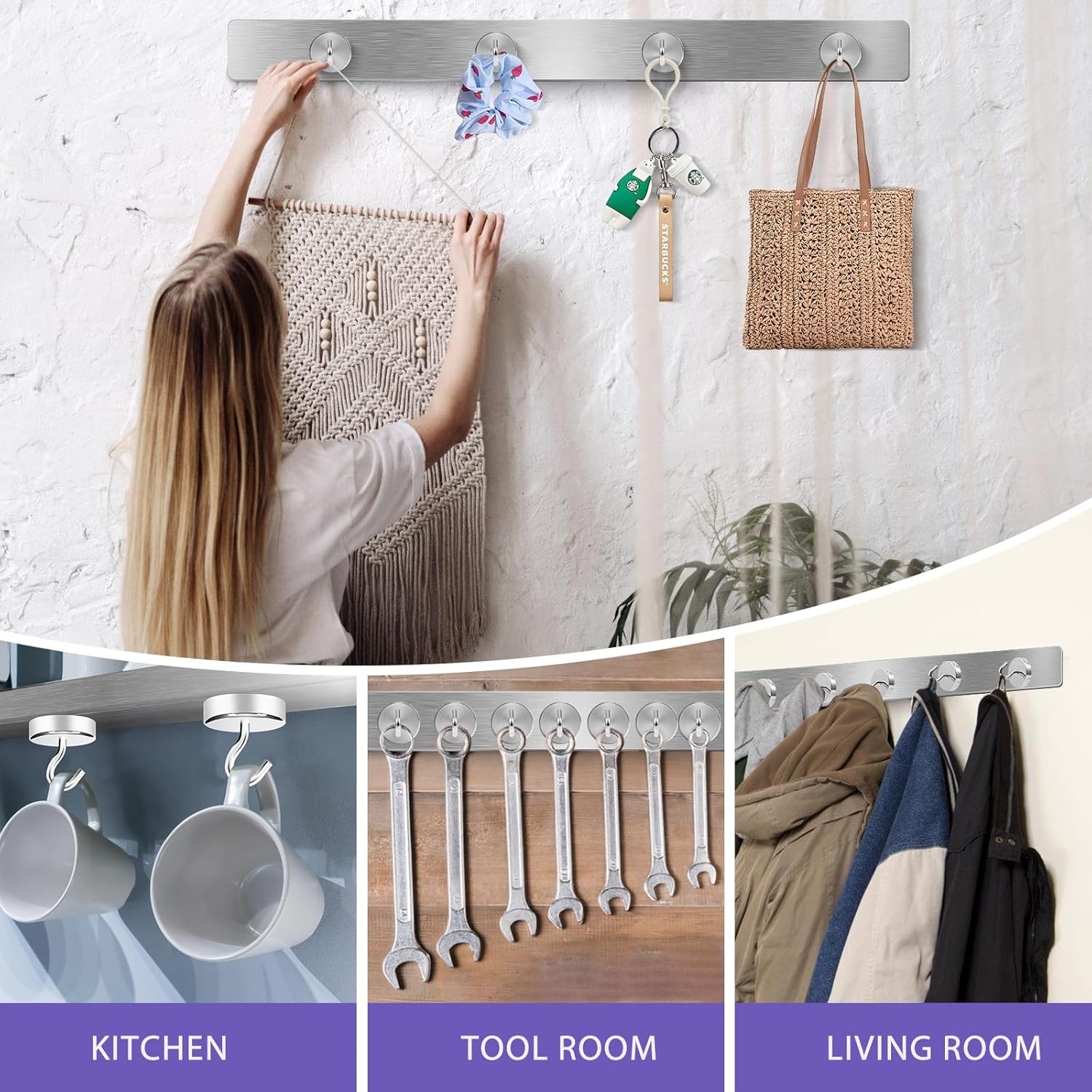 - ✔ SUPER POWERFUL - Amazing strong, sturdy, and heavy-duty metal magnetic hook with a CNC machined steel base, embedded with a high grade latest generation of ‘magnetic king’ i.e. supe Ferrite, this magnetic hook offers more than 100lb pulling force under steel. The magnetic hook is perfect for hanging items on the fridge in the kitchen.