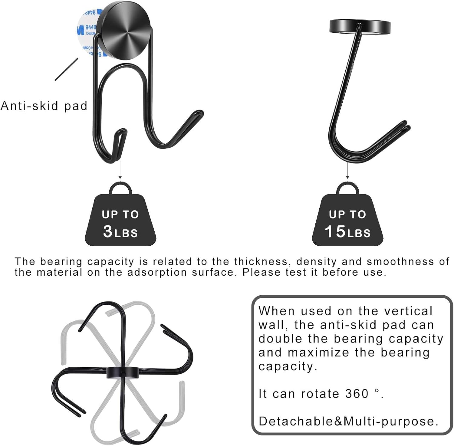 - 【Can be rotated and disassembled】The hook part can rotate 360 degrees to meet different use requirements. Also, it can be removed, and then it can be made into fishing magnet with thoroughgoing the iron wire, etc., multi use.