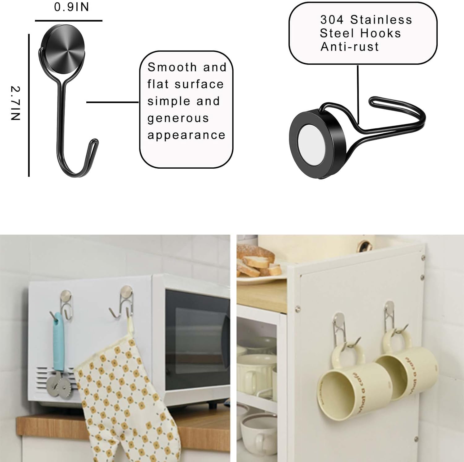- 【Stainless Steel, Anti-rust】These magnetic hooks made of stainless steel, waterproof and rust-proof. After three layers of anti-rust treatment for the round base part , smooth surface, no scratch,long-term use will not rust.