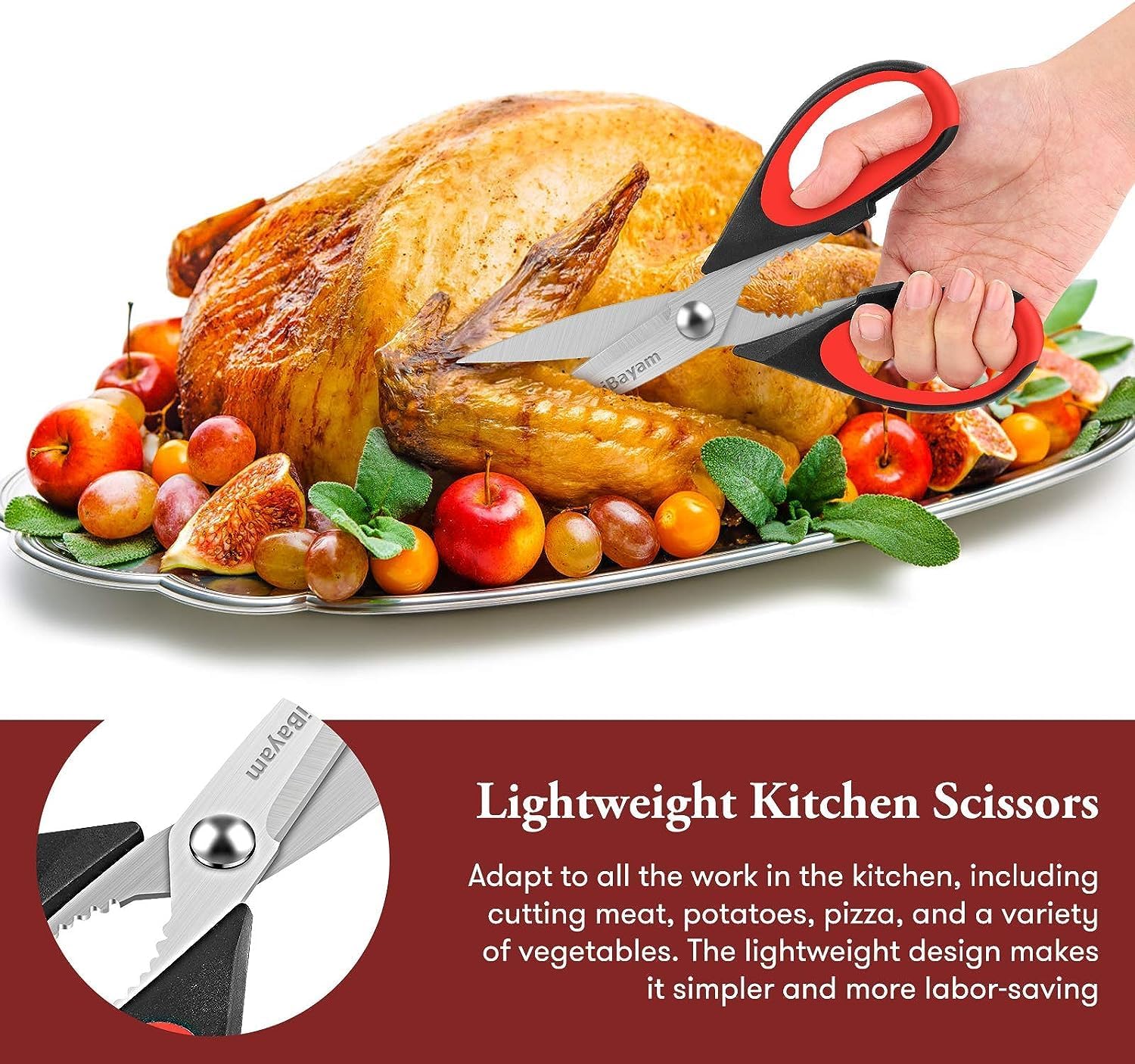 iBayam 3-Pack 8.5"Kitchen Scissors All Purpose Heavy Duty with Protective Sheath, Soft Grip Comfort Handle, Dishwasher Safe Kitchen Utensils Gadgets Set, Stainless Cooking Meat Poultry Food Shears