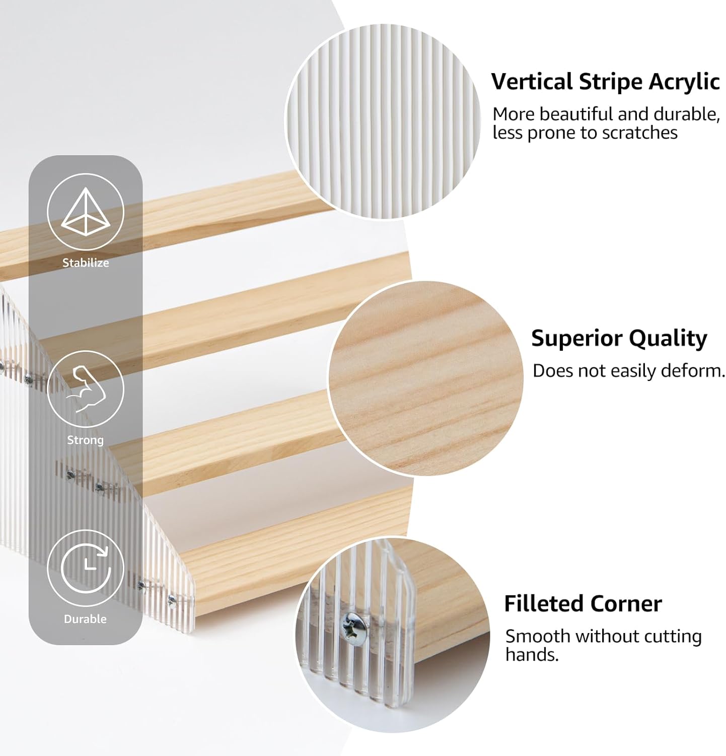 - Elegant & Sturdy: Risers display stands constructed from high-quality pine wood and corrugated acrylic, making it both aesthetically pleasing and fashionable, as well as durable and resistant to deformation, the spice shelf is a beautiful and robust addition to any space