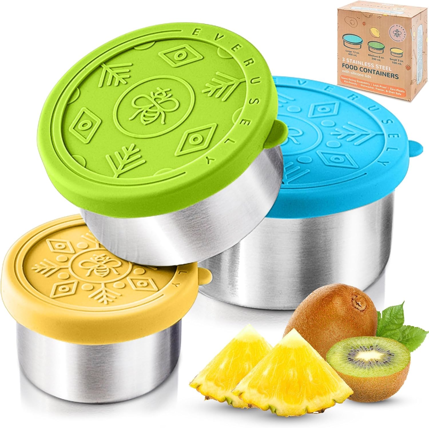 Everusely - Stainless Steel Food Containers - 3 Pack, Summer - Lunch Box - Snack Containers for Office, Home Food Storage - Leakproof with Silicone Lids - Dishwasher & Freezer Safe