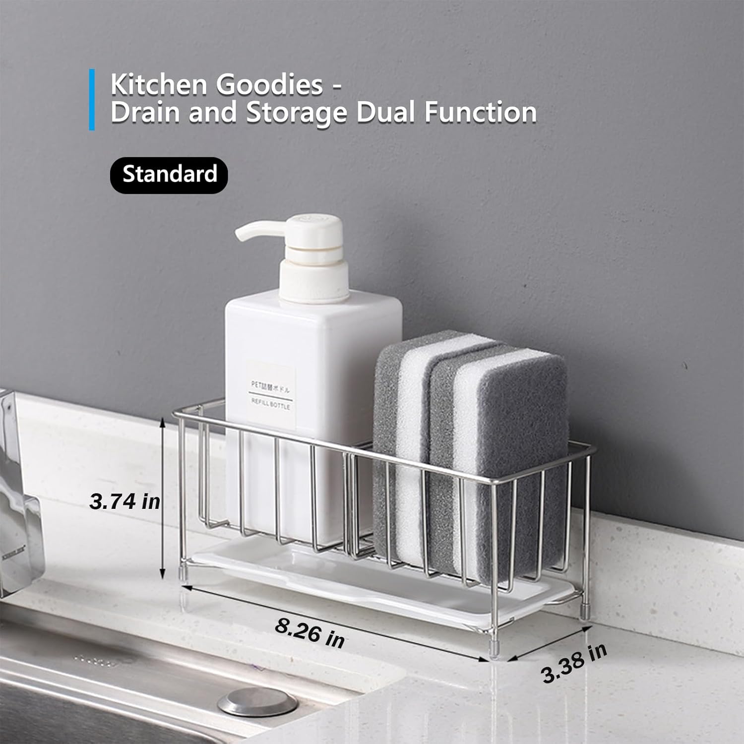 - 【Size & Capacity】The kitchen sink caddy is perfect for kitchens with limited space, it measures only 8.5"*3.4"*3.5" and can hold detergent bottles, sponge brushes, sink plugs, vegetable peelers. Kvaciva kitchen sink caddy, save more countertop space.