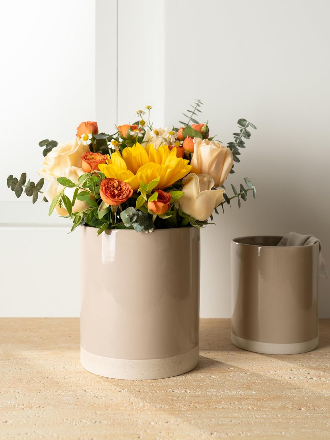 - 【Multi-Functional Cooking Utensil Holder】These kitchen utensil holders do more than just store cooking utensils. They also double as elegant vases, offering a stylish home for hair tools like combs, can be used as a storage container for freshly baked bread, even can be used as an ice bucket to cool champagne and wine. Their versatility knows no bounds!
