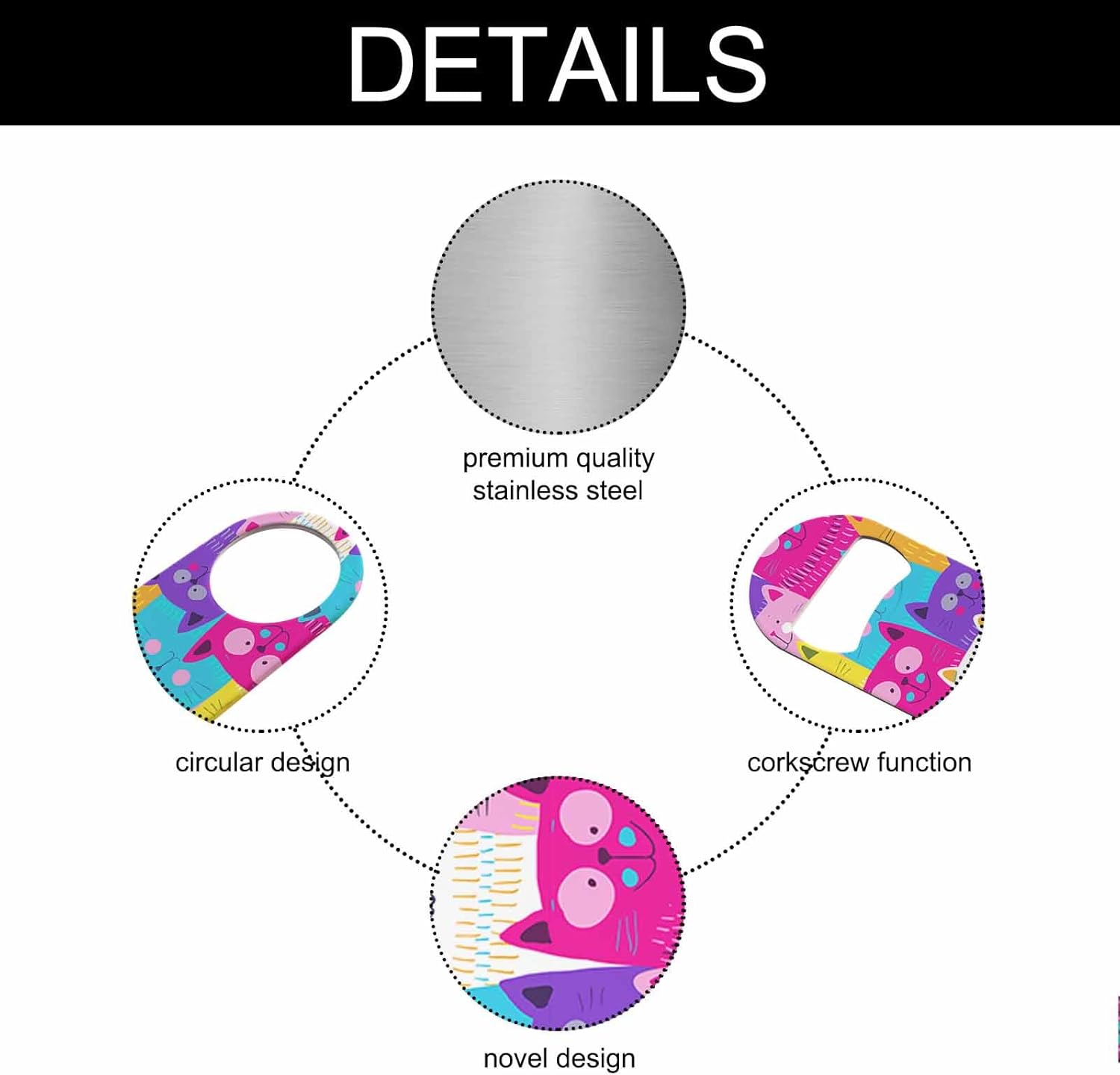 - Premium Material: Our cute cats bottle opener is made of stainless steel, sturdy for long-term use.
