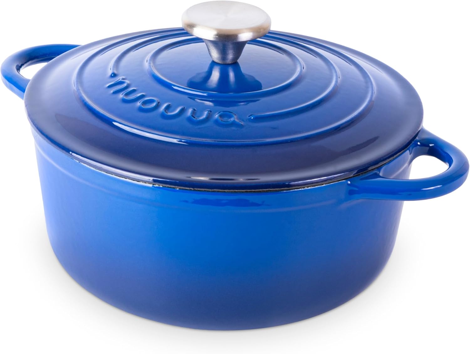 Cast Iron Dutch Oven with Lid – Non-Stick Ovenproof Enamelled Casserole Pot – Sturdy Dutch Oven Cookware – Dark Blue, 3.1-Quart, 22cm – by Nuovva