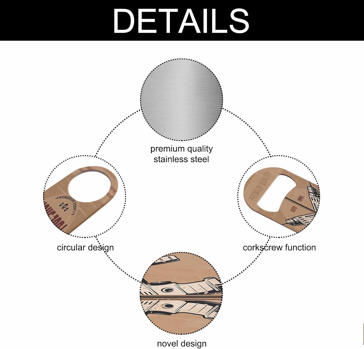 - Unique Design: Beer bottle opener is printed with double-sided printing, with multiple and interesting styles, no longer monotonous. The bottle opener is lightweight and portable, and has a round hole at the bottom of the handle for hanging, making it easy to store.
