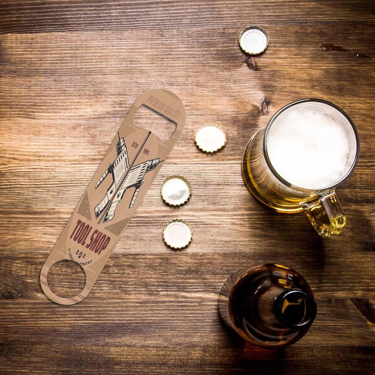 Tool Shop Stainless Steel Bottle Opener Carpentry Electric Drill and Hammer Brown Retro Poster Flat Beer Bottle Opener Keychain for Home Kitchen Bar Restaurant Party Birthday Gift