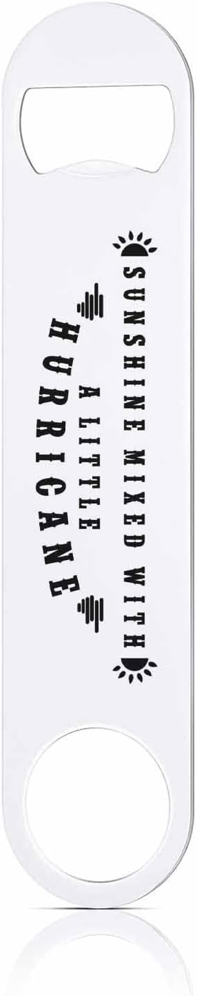 Funny Sarcastic Quotes Stainless Steel Bottle Opener Sunshine Mixed with A Little Hurricane Flat Beer Bottle Opener Keychain for Home Kitchen Bar Restaurant Party Birthday Gift