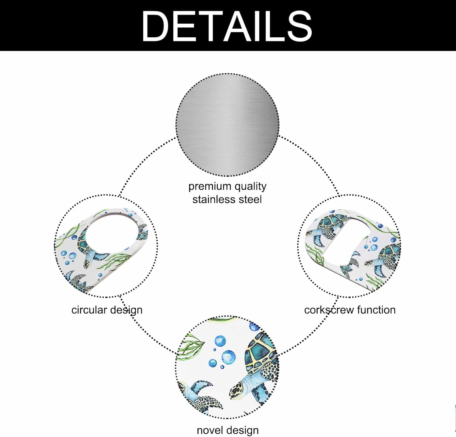 - Premium Material: Our watercolor turtles bottle opener is made of stainless steel, sturdy for long-term use.