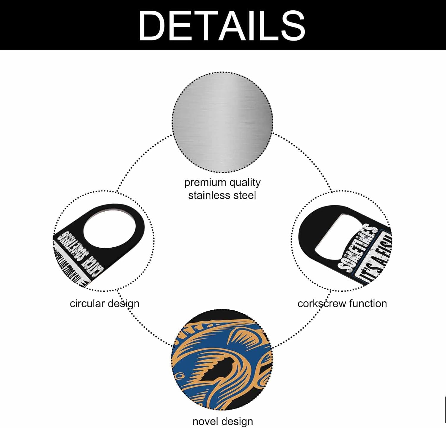 - Premium Material: Our fishing bottle opener is made of stainless steel, sturdy for long-term use.