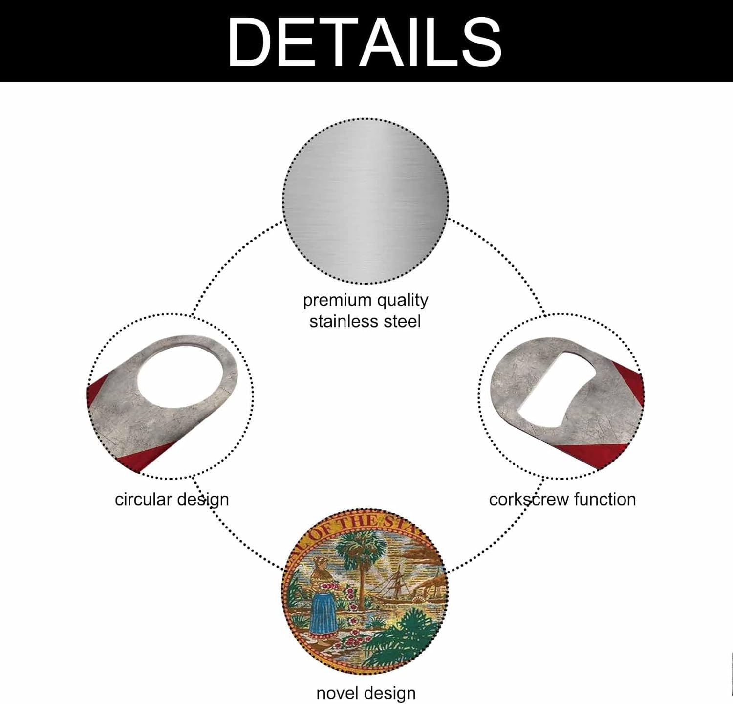 - Premium Material: Our florida state flag bottle opener is made of stainless steel, sturdy for long-term use.