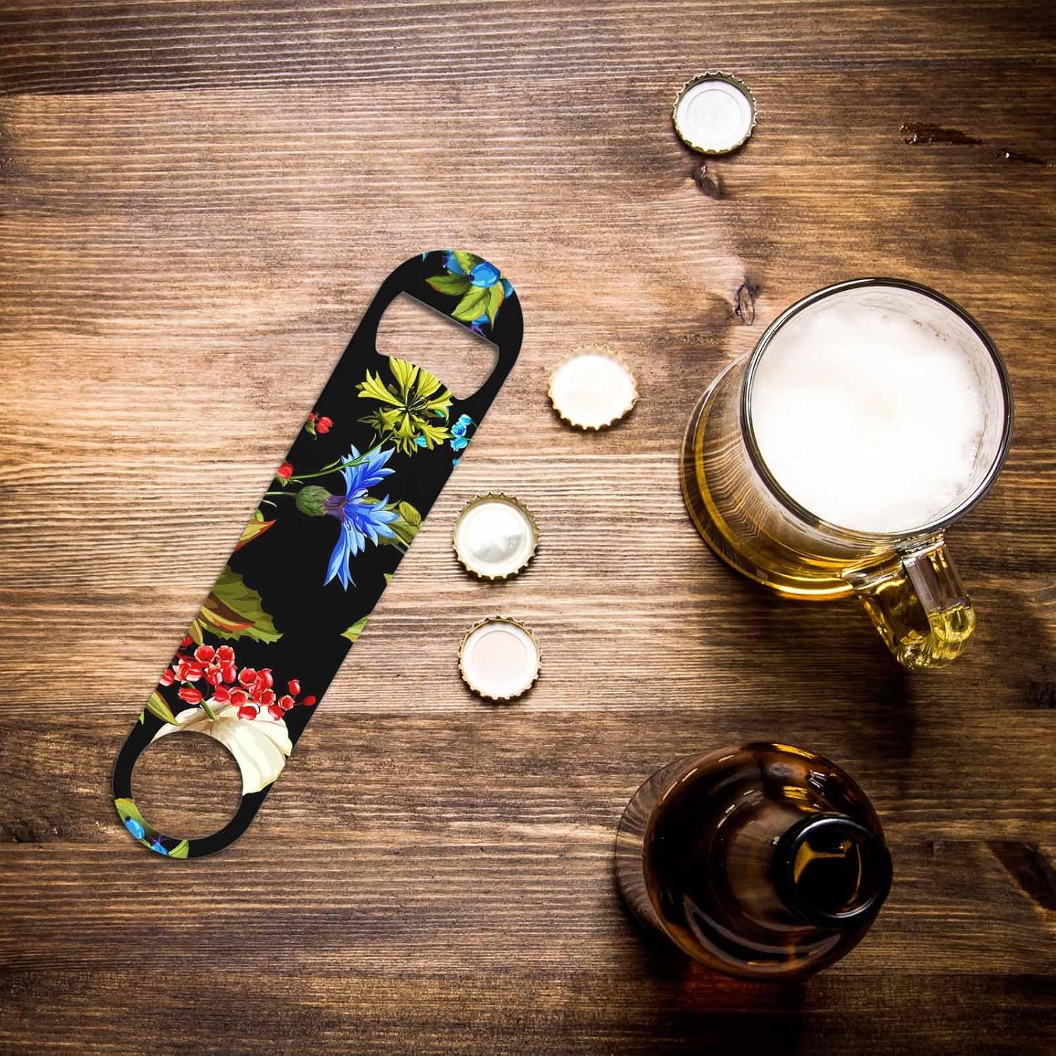 Flowers Stainless Steel Bottle Opener Poppy Wild Roses Cornflower with Leaves Watercolor Floral Romantic Flat Beer Bottle Opener Keychain for Home Kitchen Bar Restaurant Party Birthday Gift