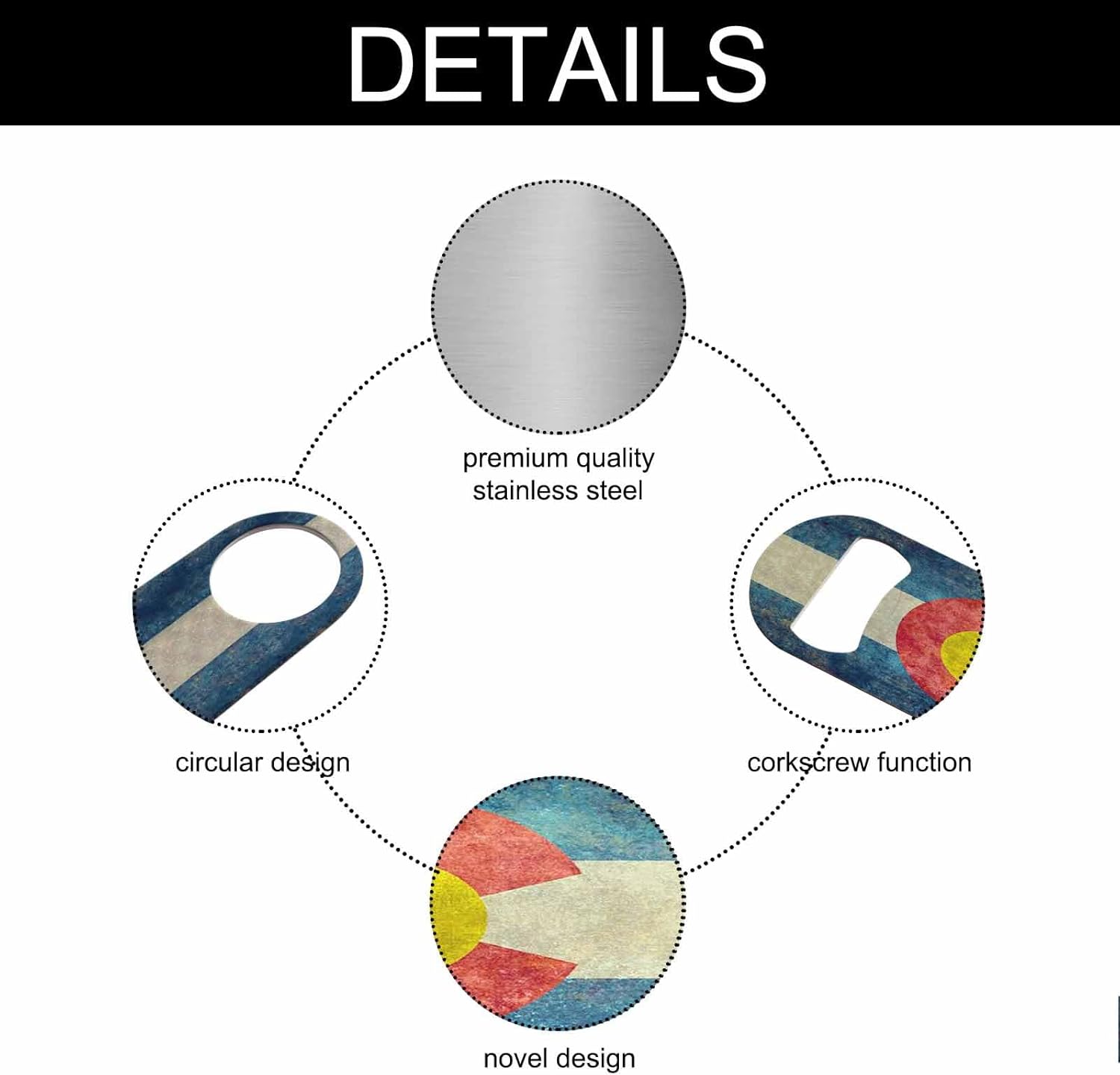 - Premium Material: Our colorado flag bottle opener is made of stainless steel, sturdy for long-term use.