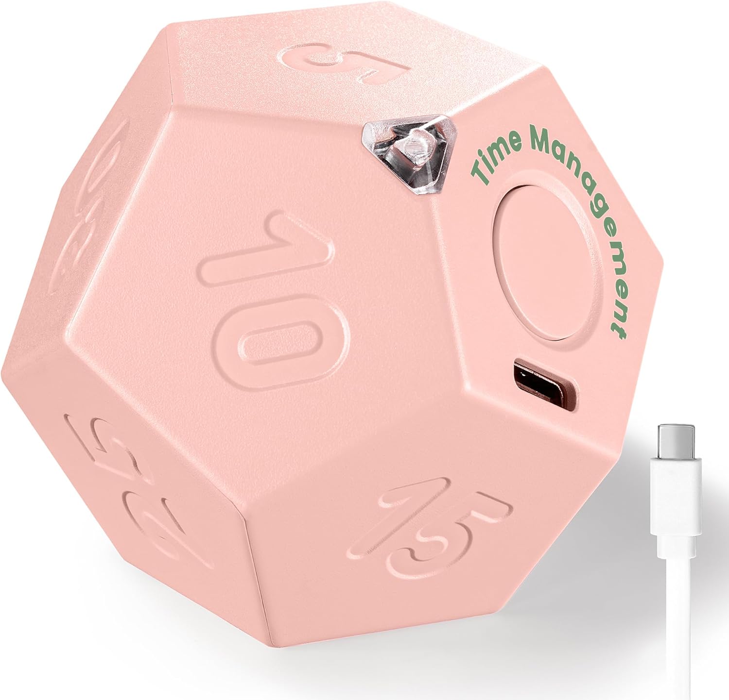 KADAMS Pomodoro Cube Timer Productivity-11 Preset Countdowns, Flip-to-Start Gravity Activation - Sound Vibrate Mute Rechargeable - Ideal for ADHD Kid Kitchen Classroom Cook Study Exercise - Pink
