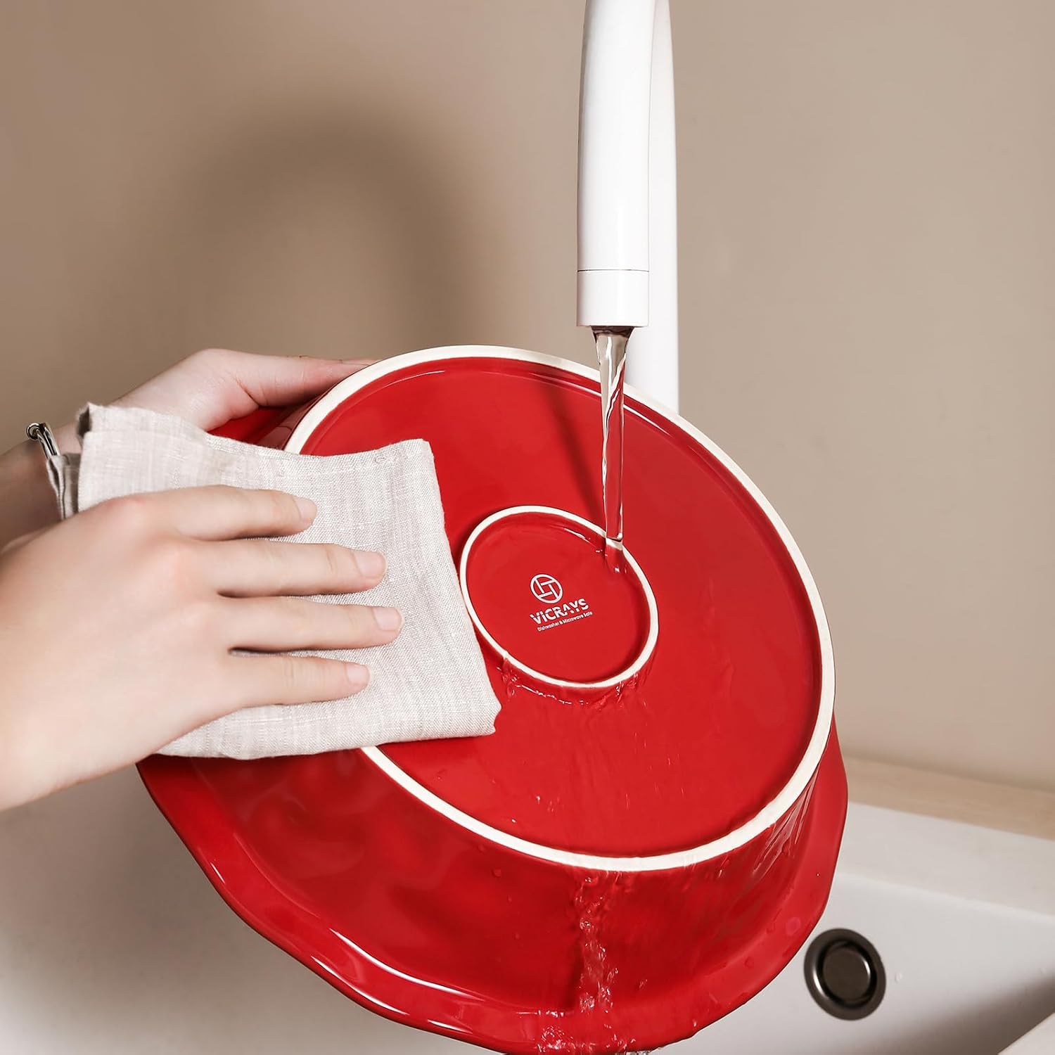vicrays Ceramic Pie Pan for Baking - 9 inch Pie Plate, Round, Fluted and Deep Pie Dish for Tart, Pizza, Apple Pie, Quiche, Pot Pies, Cake - Reactive Glaze (Red)