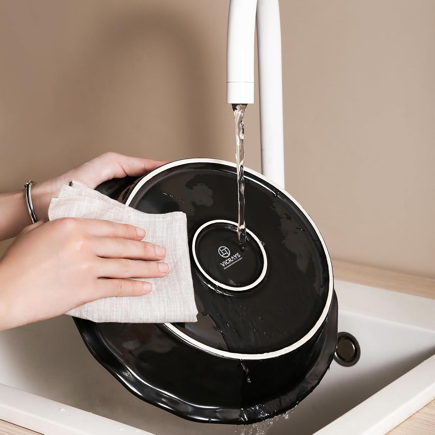 - EASY CLEANUP - Nonstick and smooth glaze resists sticking or flaking, easy to clean with dishwasher or hand wash with soap and water