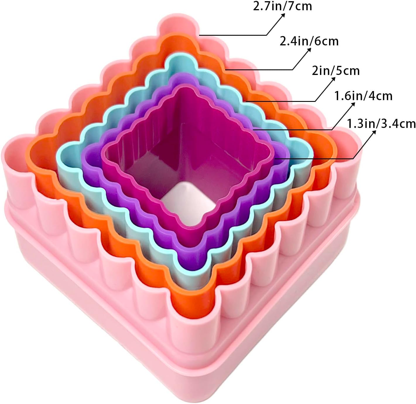 Cookie Biscuit Cutter Set, Two Side Cookie Cutters Plastic Set Multi-size Cake Fruit Vegetable Shapes Cutter Random color (Square Shaped, 5 Pack)