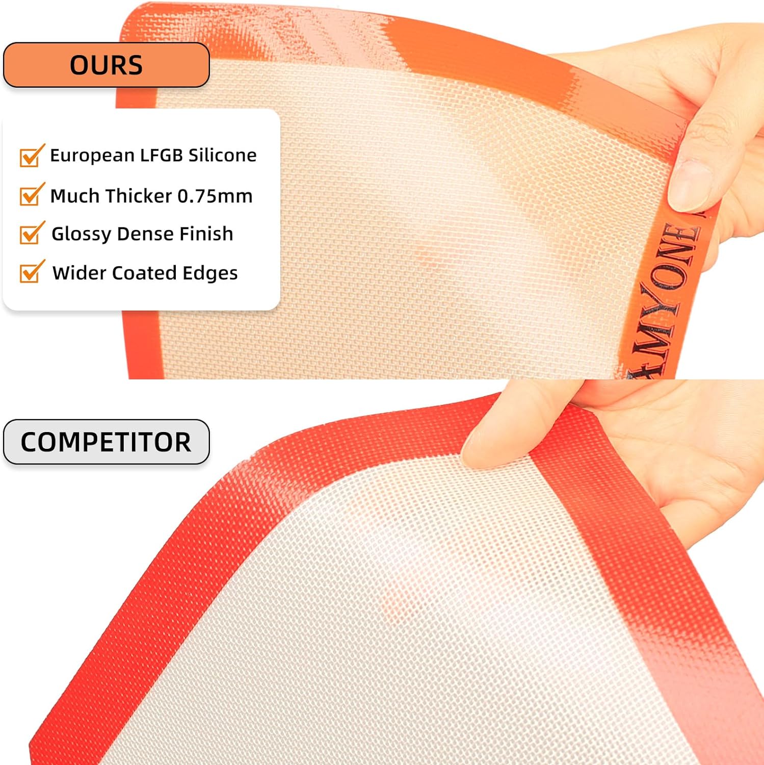 - đ„ăHEAT RESISTANT & VERSATILEăWith a thickness of 0.75mm and with glossy dense finish as well as wider coated edges, these baking mats for eighth sheets, are designed to withstand temperatures ranging from -40°F to 480°F (-40°C to 249°C), making it suitable for a wide range of baking needs. From delicate pastries to hearty bread, it delivers consistent results every time.