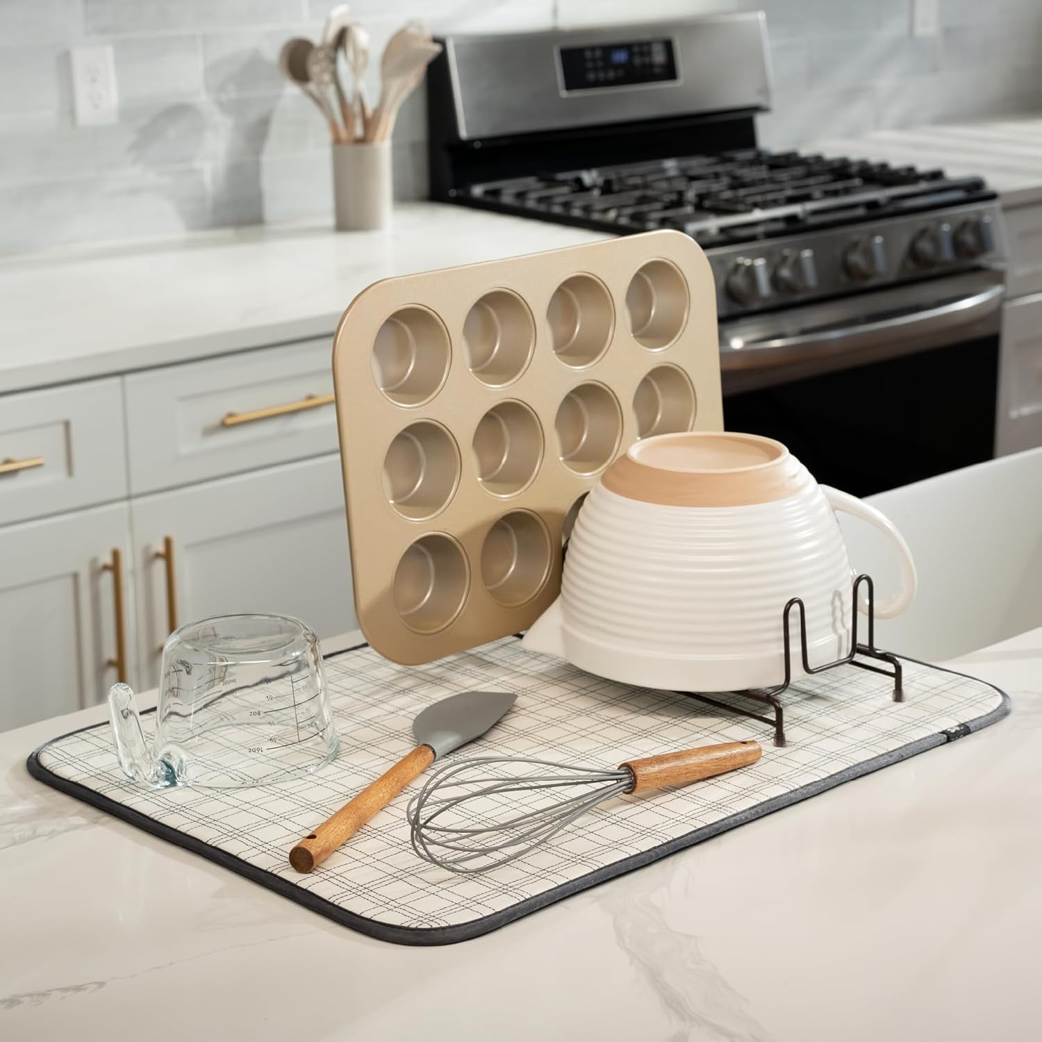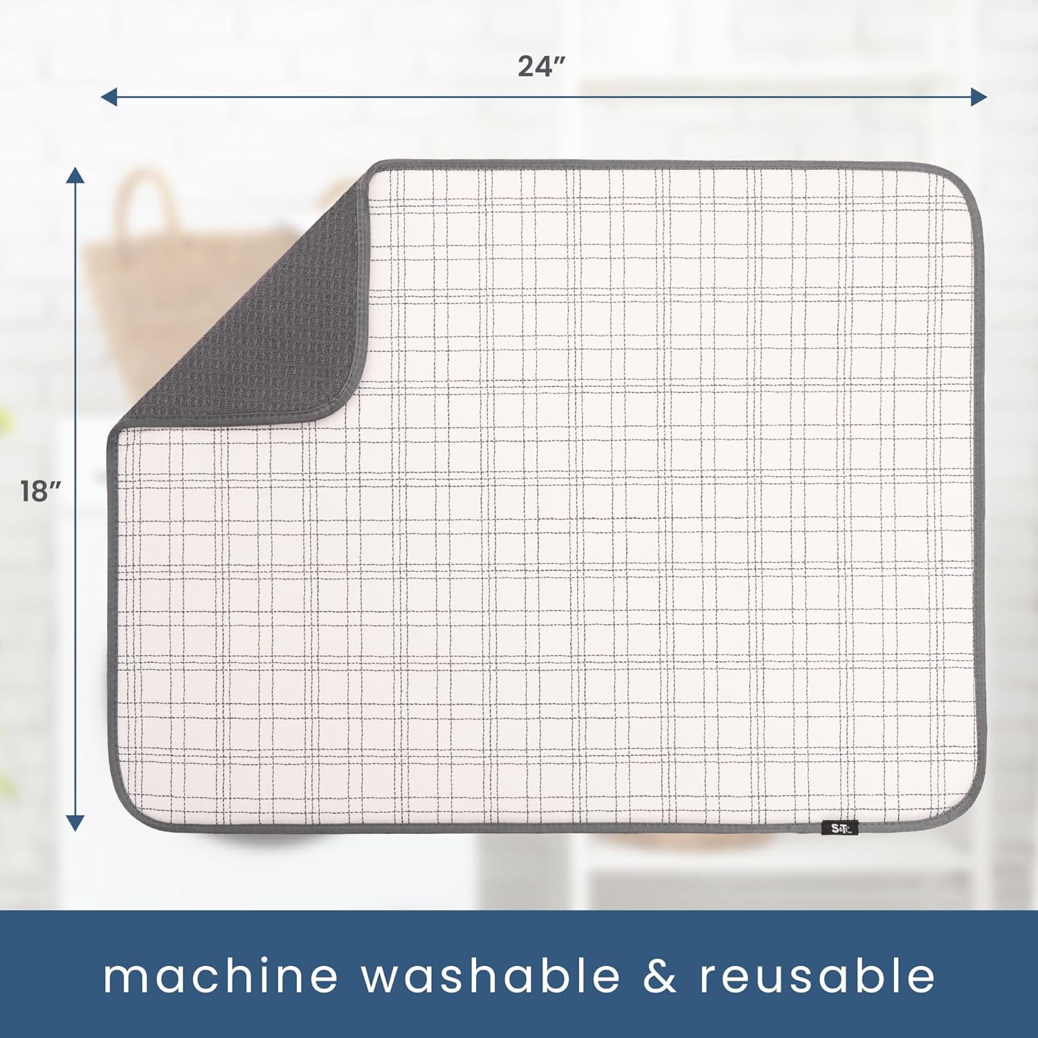S&T INC. Dish Drying Mat XL, 18” x 24”, Absorbent Microfiber Kitchen Counter Mat, Dish Drying Pad for Dishes, Utensils, Pots and Pans, Extra Large, Stitched Plaid