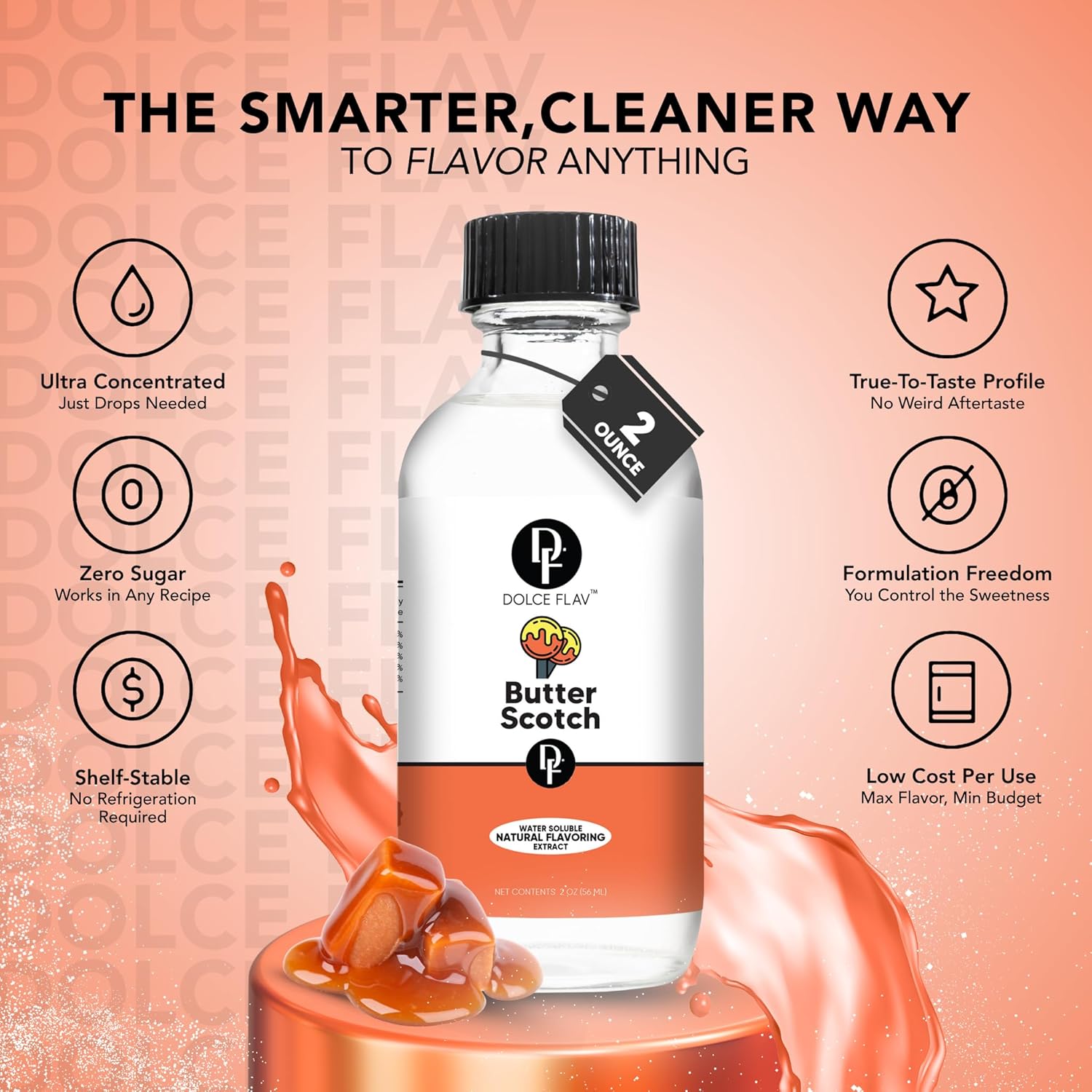 Dolce Flav Natural Butterscotch Extract 2 oz – Kosher, Sugar-Free, Concentrated Rich Butterscotch Flavoring for Baking, Beverages & Desserts, Includes Measured Dropper