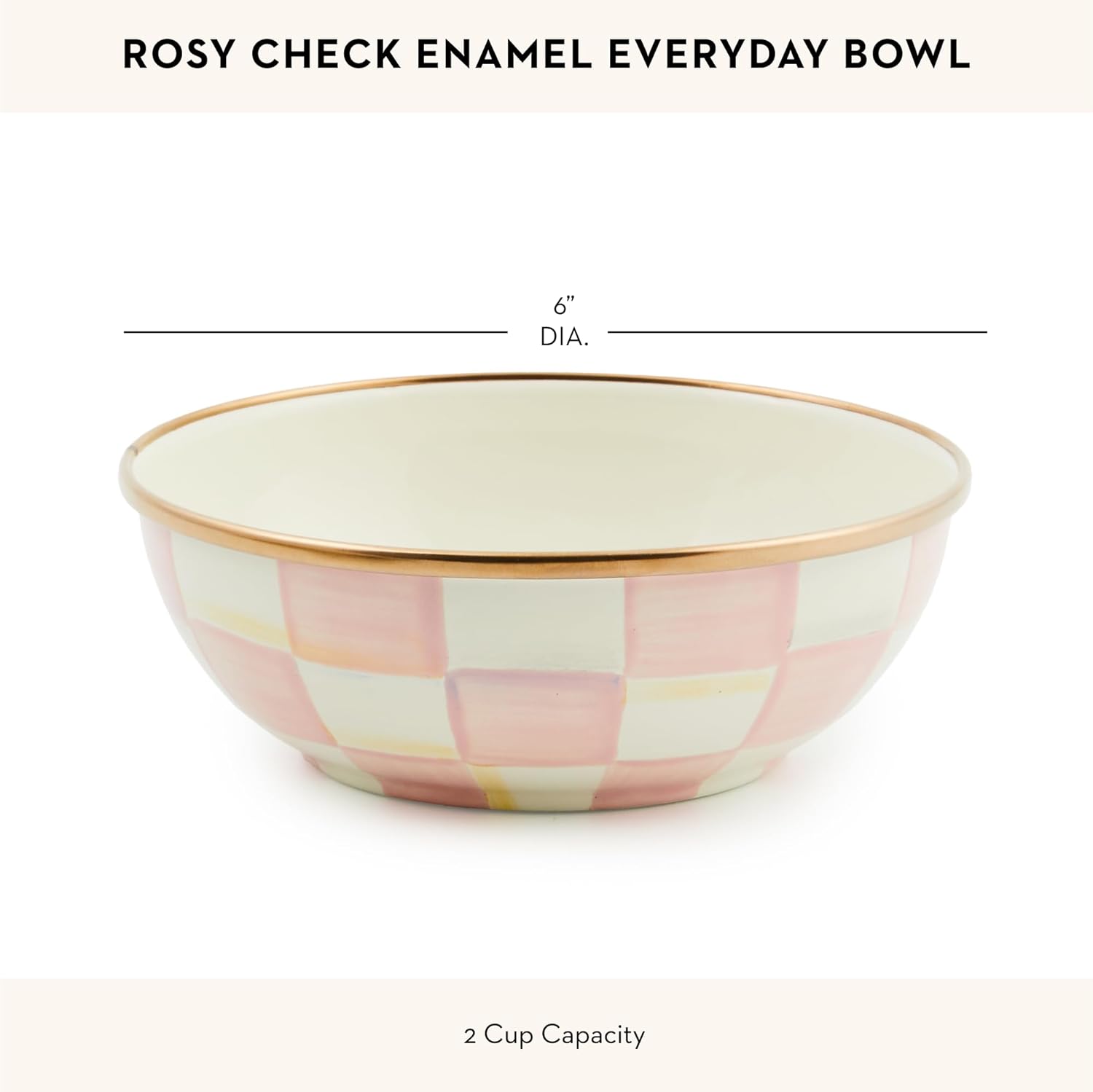 MACKENZIE-CHILDS Enamel Everyday Bowl, Serving Bowl for Entertaining, Extra-Small, Pink-and-White Rosy Check, Set of 1