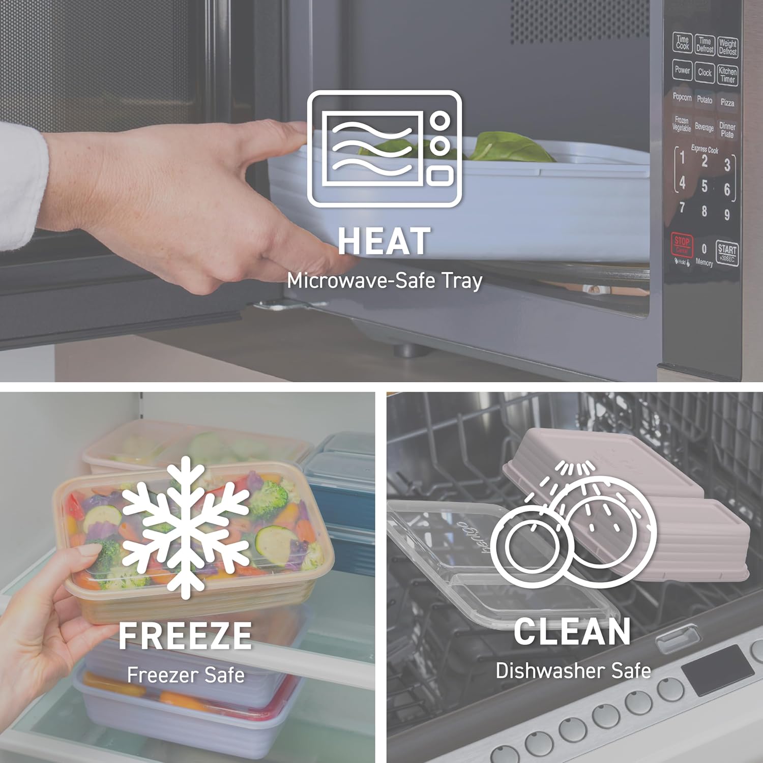 - Easy to Heat & Clean: Safely heat up your food straight from the freezer or refrigerator for warm, delicious meals and leftovers. Each meal prep container is both microwave and top-shelf dishwasher safe. Note: before microwaving, open the lid corner to allow steam to vent. For best results, hand wash to extend the life of the product.