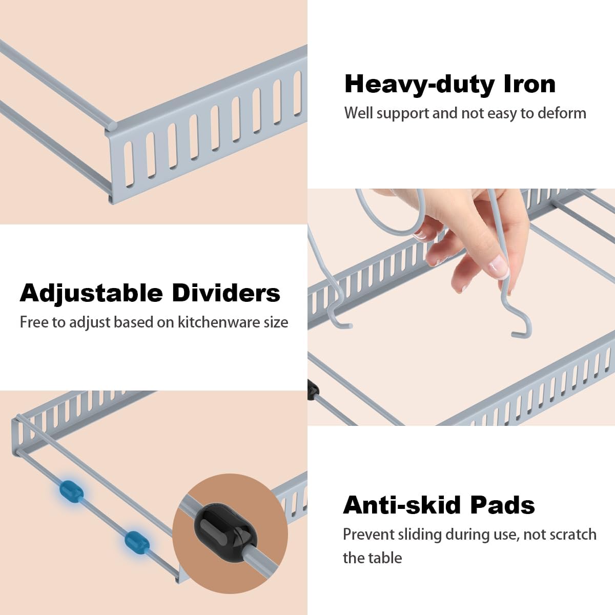 - Special Feature : Pot and Pan Organizer Rack for Cabinet Pot Lid Organizer Pot and Pan Holder Rack Storage Organizer for Kitchen Cabinet, 【Customized Storage】 There are 14 adjustable dividers, the pots and pan holders provide a customized storage experience. According to the size of your kitchenware, you can choose how many dividers you want to insert and adjust the spacing between them, fitting more types of kitchenware., 【Expandable Pans Organizer】 The cookware organizer rack easily stretches from 12" to 23", you can freely adjust the rack length as needed. In addition, it can also be divided into 2 separate pot racks for use, categorized for easy storage. Anti-slip pads at the bottom protect the desktop from scratches., 【Good Organize Helper for Kitchen】 Get more storage space and well organize the kitchen, the expandable pots and pans rack allows you to make full use of cabinet, countertops or under sink space more efficiently. Fits to store your pots, pans, lids, trays, plates, cookie sheets, cutting boards and other kitchenware, creating a neat kitchen., 【Strong Material】 High-quality heavy-duty iron material with strong load bearing capacity, the cabinet organizer for the kitchen even holding high-weight pans, pot lids, large plates, etc. will not be easily deformed, sturdy and durable. Pot and Pan Organizer Rack for Cabinet Pot Lid Organizer Pot and Pan Holder Rack Storage Organizer for Kitchen Cabinet, 【Customized Storage】 There ar… See more