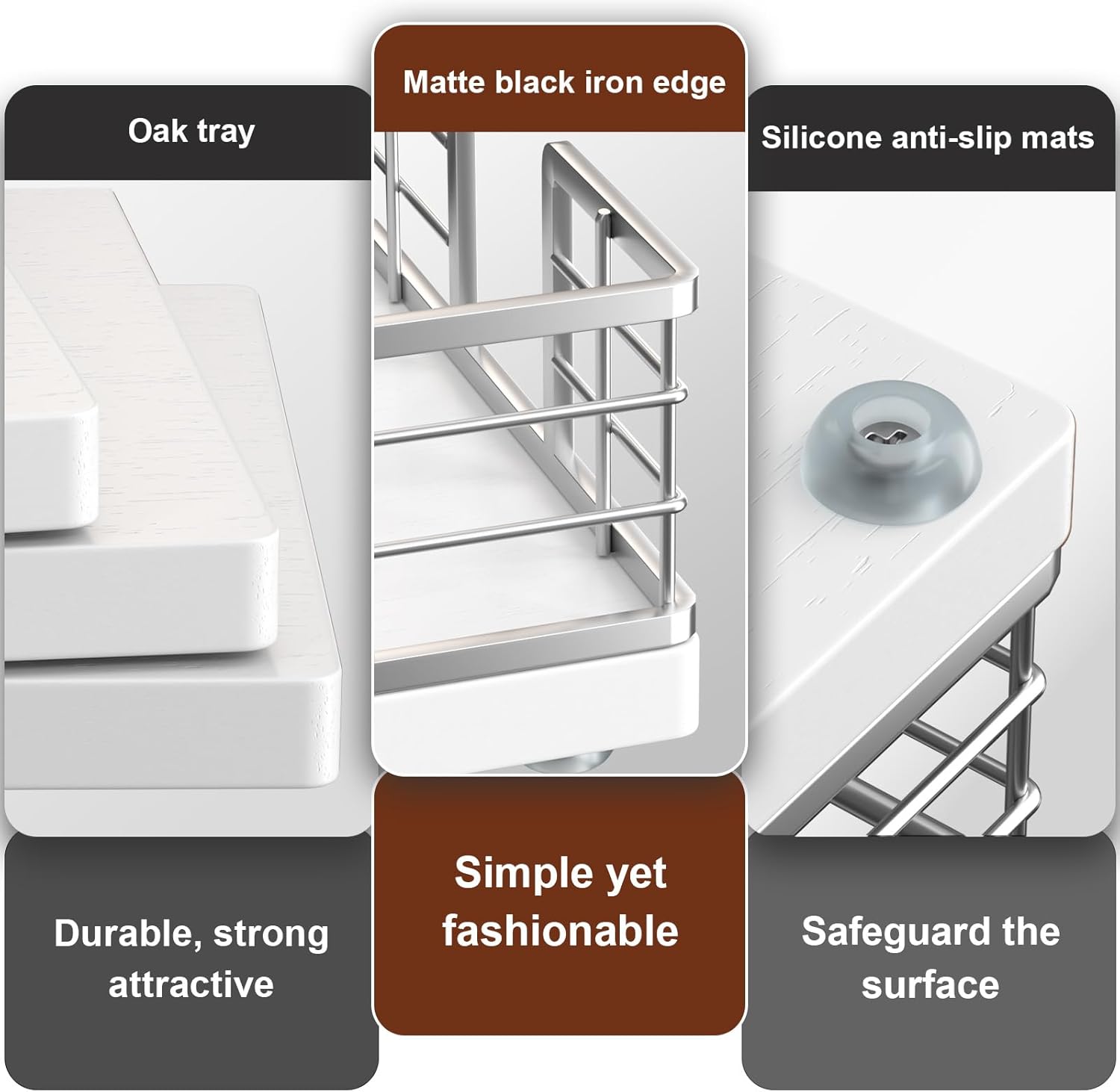 - Cost-effective: No assembly required, easy to clean. The tray crafted from iron and oak is simple and attractive. The solid bottom ensures items won't fall. With silicone non-slip pads, it provides both anti-slip functionality and better protection for surfaces
