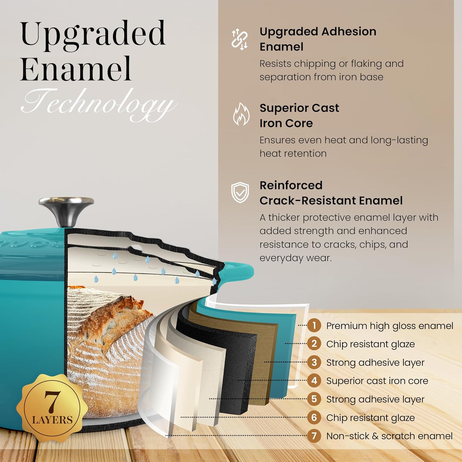 Nuovva Enamelled Cast Iron Dutch Oven Pot with Lid – 6.4 Quart Non Stick Casserole Pot – Heavy Duty & Oven Safe up to 500° F for Bread Baking, Braising, Stews, Roasting – 28cm Teal