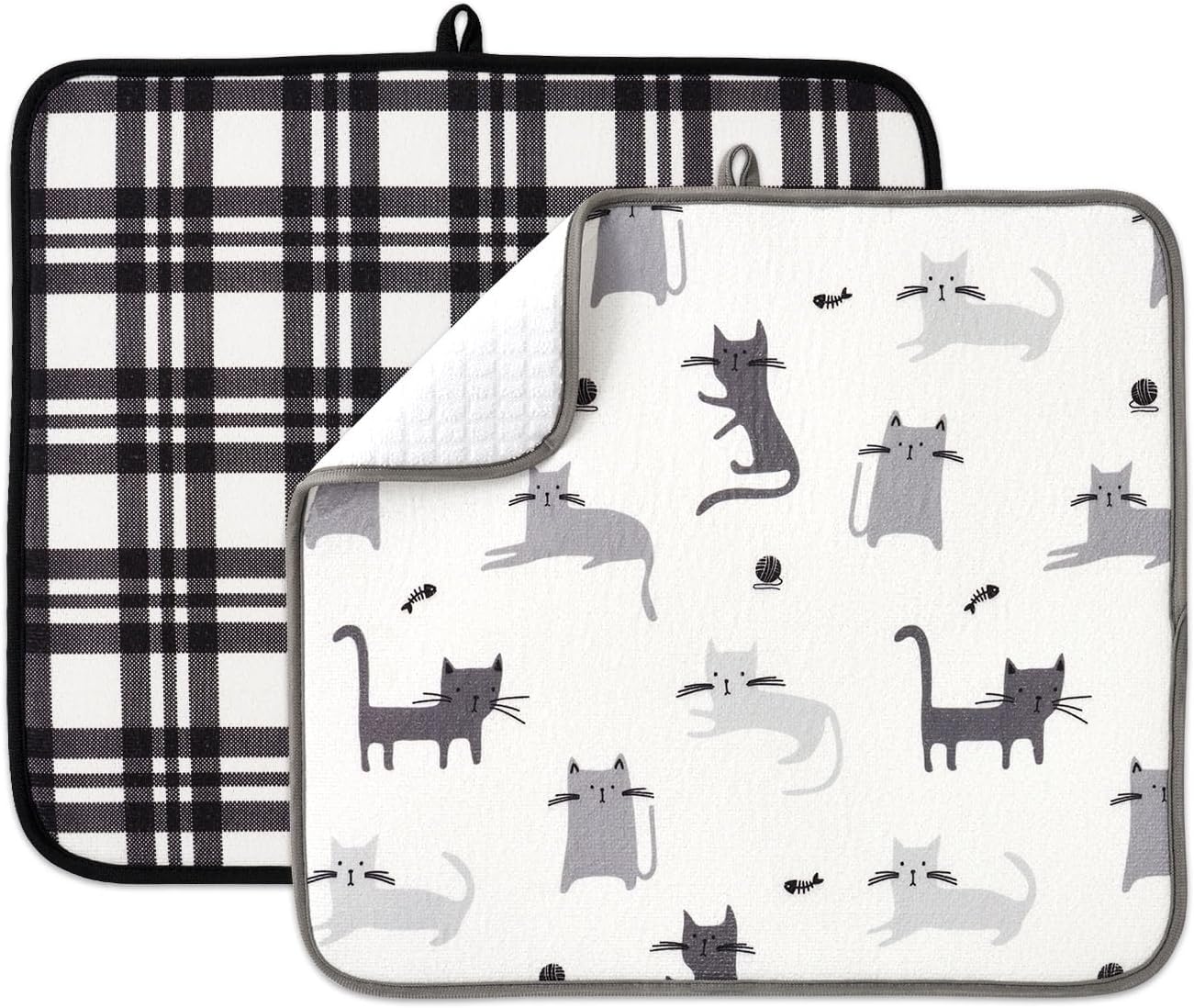 FRESHMINT Printed Dish Drying Mat Set for Kitchen Counter Absorbent Reversible Drying Mats Microfiber Kitchen Countertop Protector Dishes Pad 2 Pack Large Dish Drainer Rack Mat, 18" x 16"